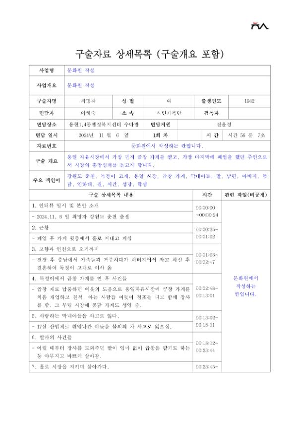 구술내용 요약