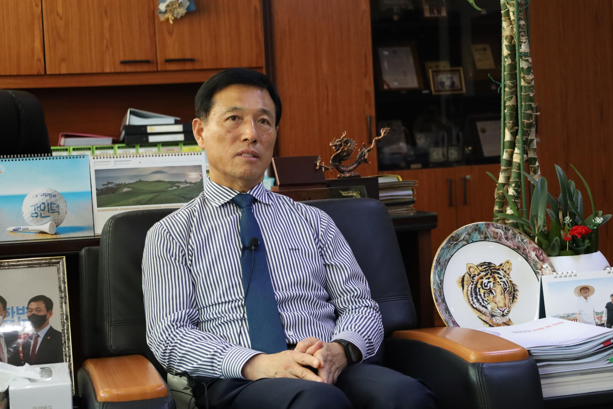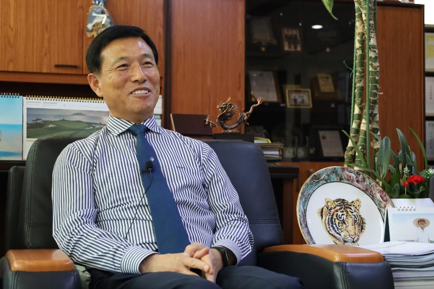 이 사진은 (주)국일정공 강인덕 대표의 인터뷰 사진이다.