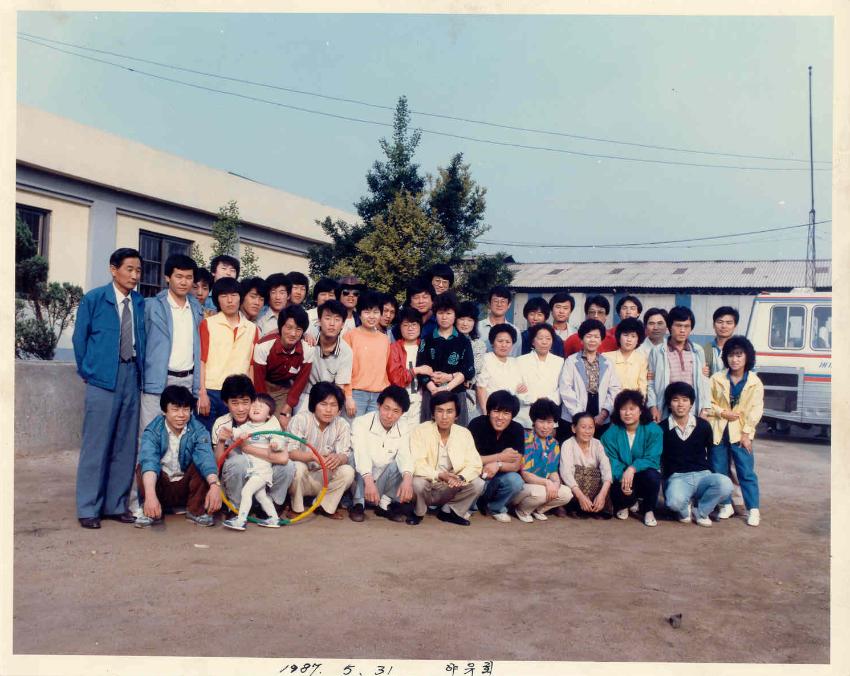 (주)대금지오웰에서 제공한 사진으로 1987년 회사 야유회에서 찍은 직원들 단체 사진이다.
