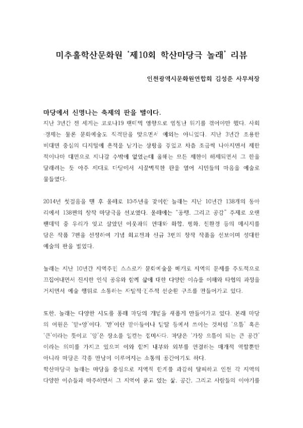 | 검색어 | 마당예술동아리,학산마당극놀래,시민창작예술,리뷰 |