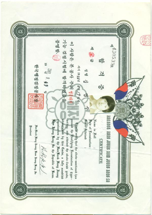 영문기능타자 검정시험 합격증