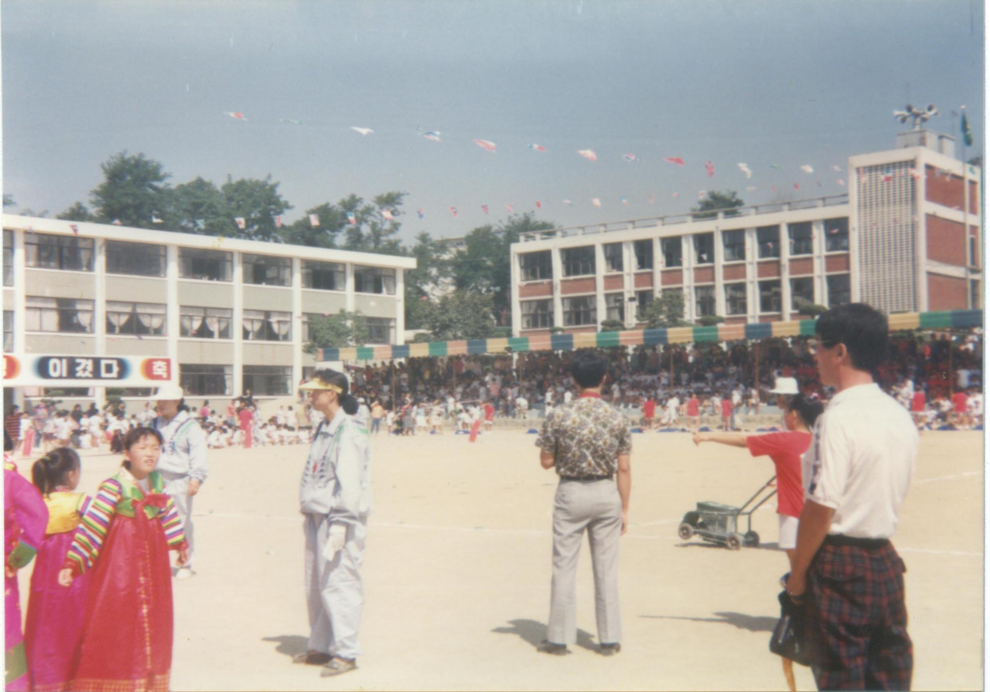 학익초 가을운동회 풍경으로 추정되며 이땐 부모님들도 티셔츠를 맞춰입고 학부모 대항전을 했었어요. 요즘의 운동회 풍경과는 많이 다른 것 같습니다.
