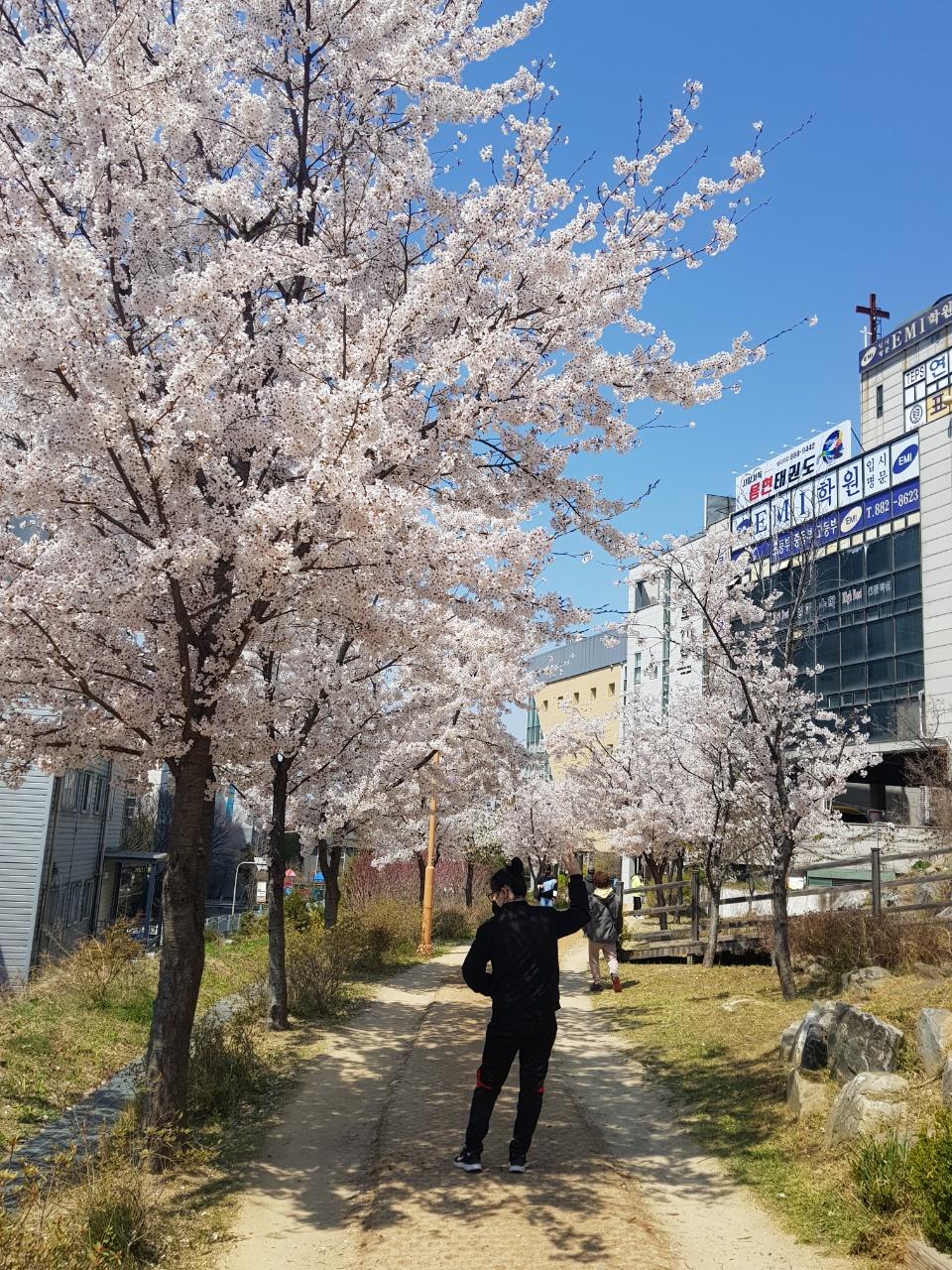 짧은 길이지만 봄을 활짝 느낄 수 있는 길입니다. 벗꽃이 만발해 꽃사진 찍기 좋아하는 우리딸과 함께하기에도 좋은 길입니다. 또한 하얀 벗꽃 아래 재잘재잘 지나가는 유치원생들의 봄나들이라도 만난다면 더욱 마음이 흐뭇해지고 가슴 속에 행복 한가득 담고 올 수 있는 그런 곳 입니다.