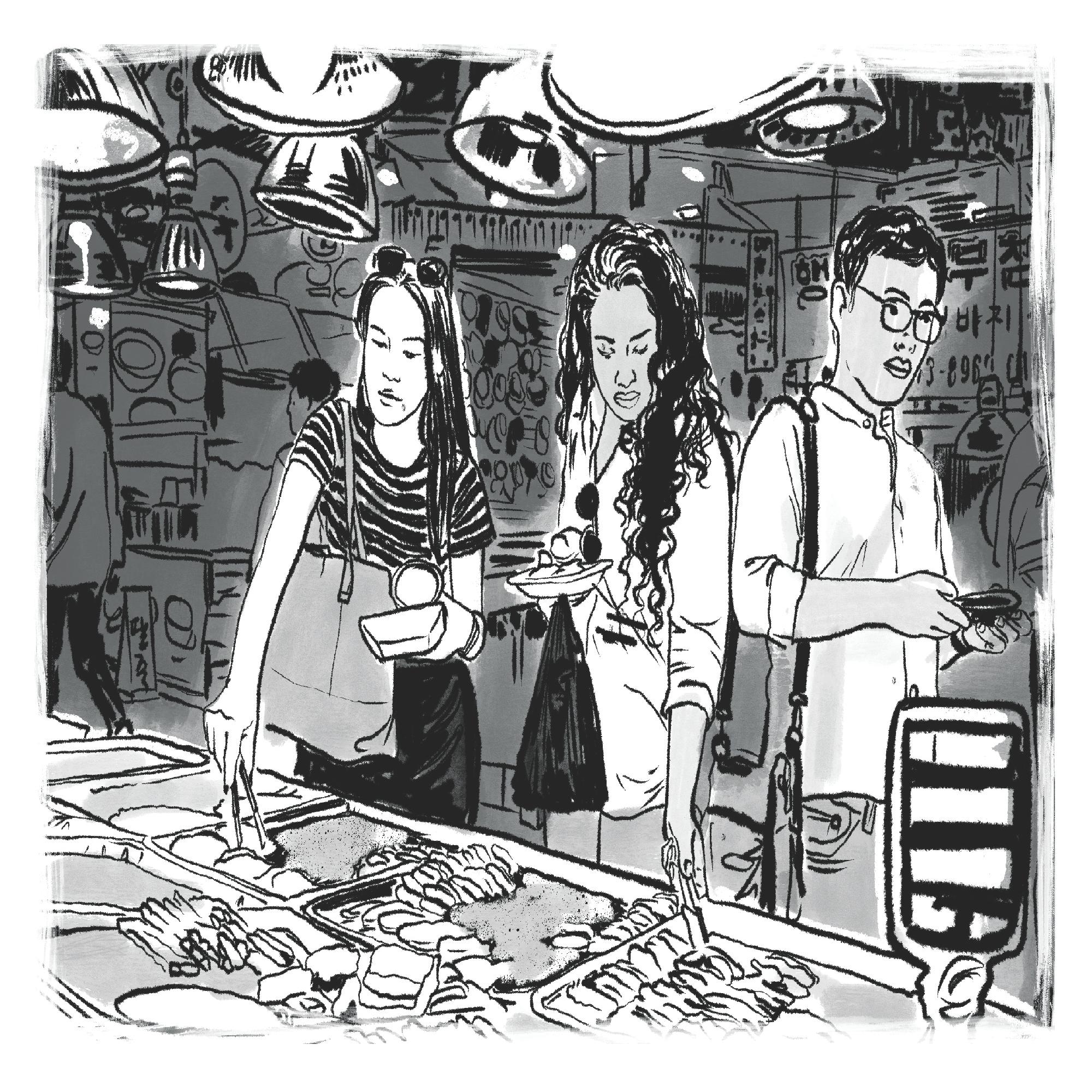 신기시장을 이용하는 외국인 관광객 드로잉 미추홀살아지다1 안녕? 신기촌 사람들에 수록
