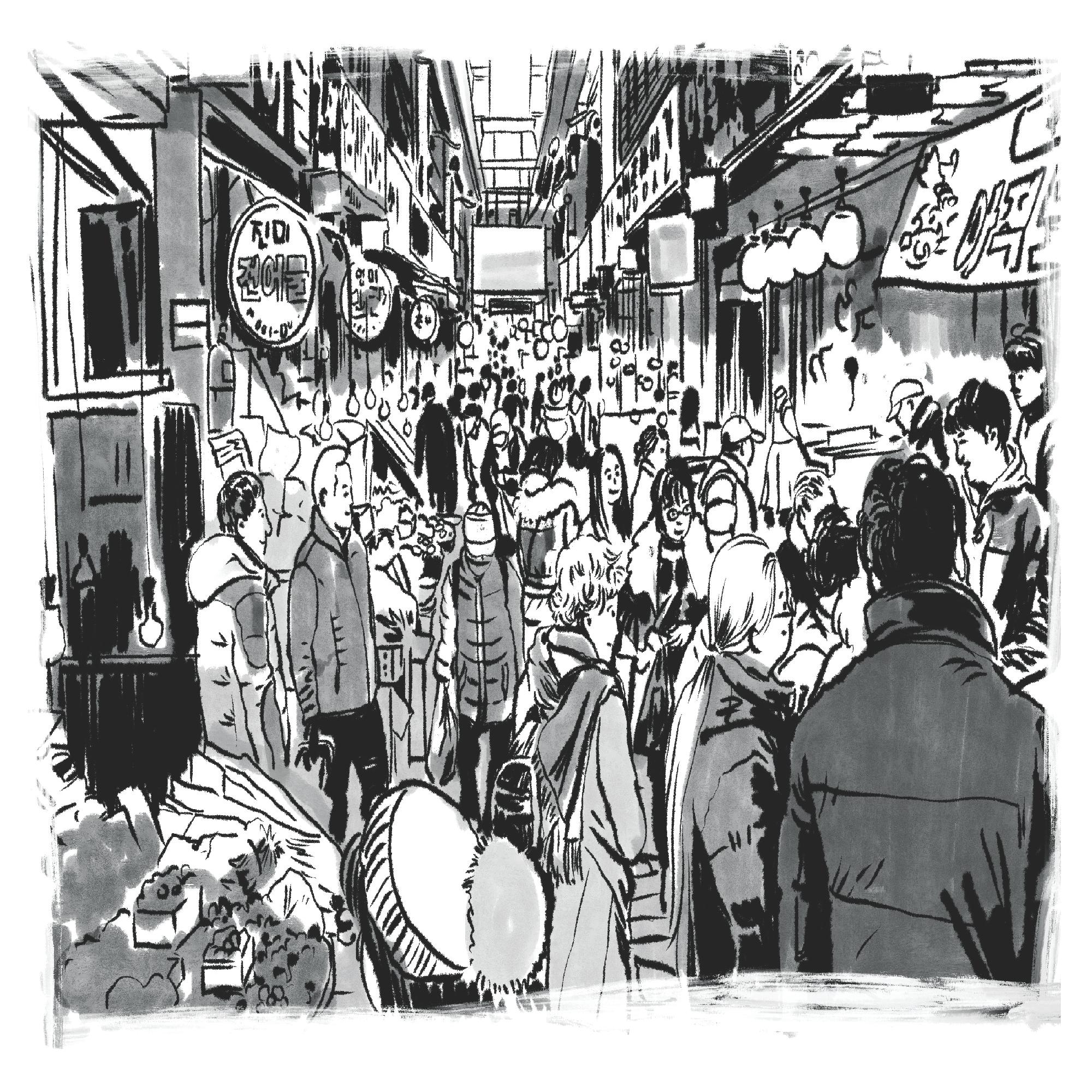 북적이는 신기시장 드로잉