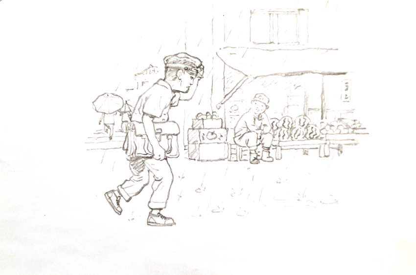 | 변경후 내용 | 승기천에 대한 기억을 소재로 진행한 김윤식의 구술인터뷰 중 비를 맞고 학교에서 걸어오는데 그 모습을 본 노인네의 소리의 창피함을 느꼈다는 내용을 토대로 그린 삽화 "고등학교 되니까 파란색 비닐우산이 있 |