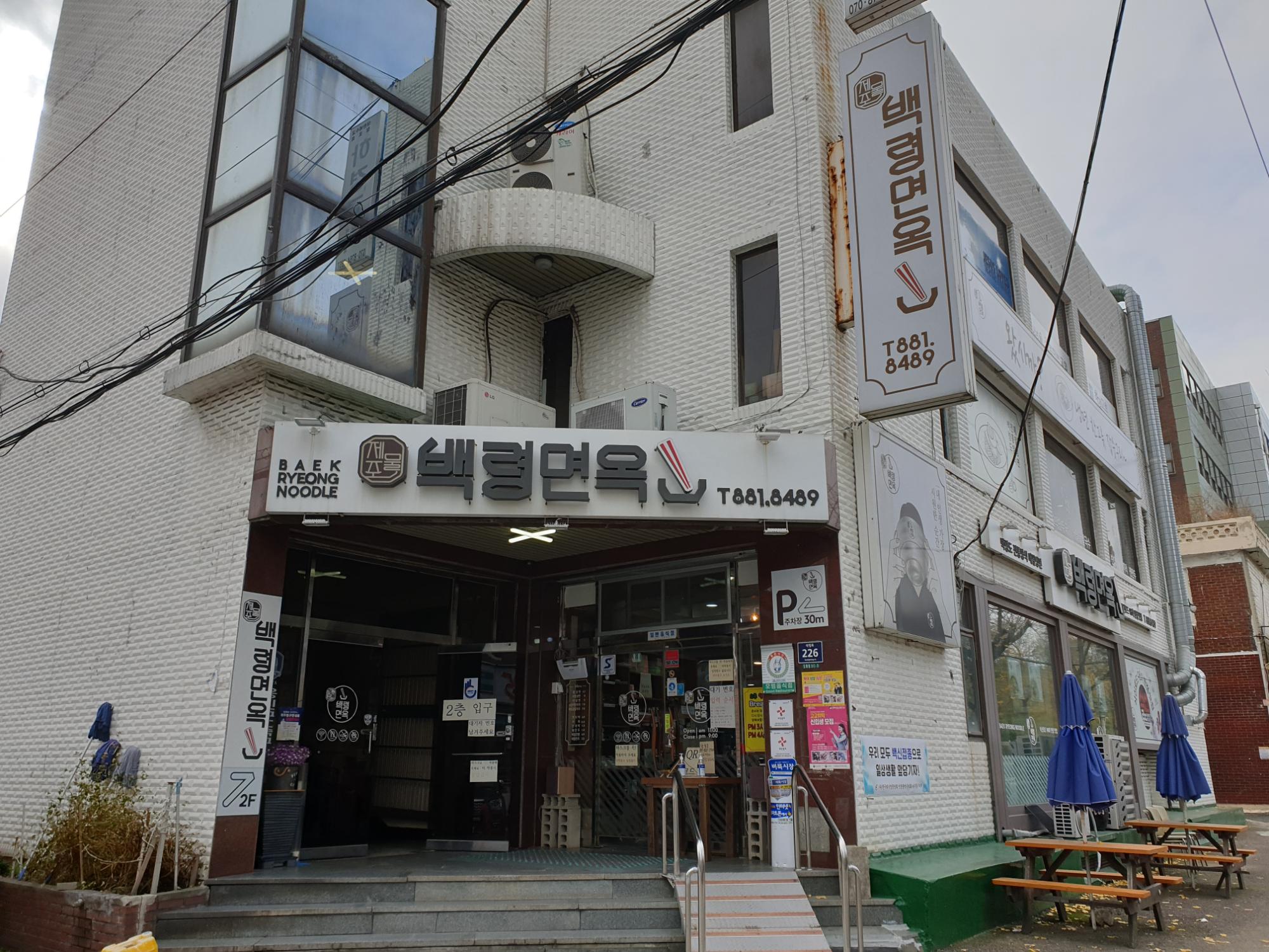 | 변경후 내용 | 제물포 뒷 역 인천상수도사업본부 맞은 편에 위치한 백령면옥 가게 전경이다. 사장님의 고향이 백령도이며, 백령도식 냉면을 판매하고 있다. • 촬영장소 : 백령면옥 • 촬영일시 : 2021년 11월 23일 • 사진 |