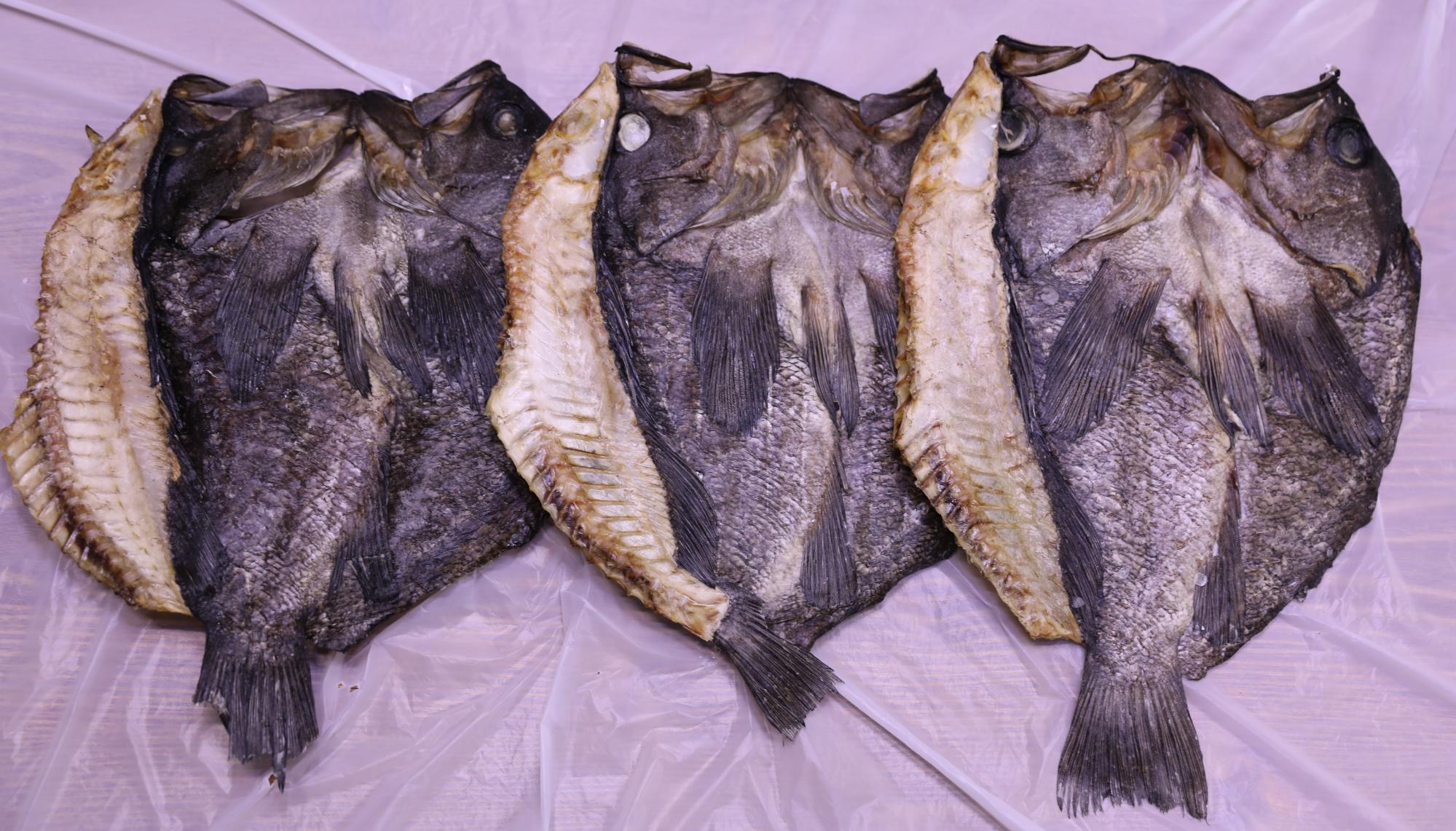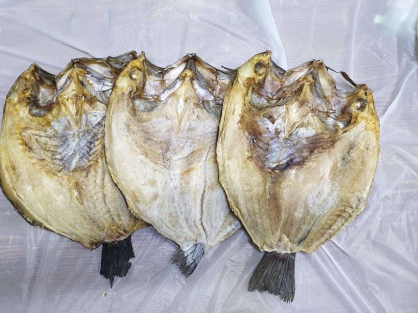 독배골 말린우럭 사진이다. 말린 생선은 자연산이여서 귀한 물건이다. 핏기없이 깨끗이 손질하여 말린 껍질과 살에서는 어떠한 잡내도 나지 않는다. 말린 우럭은 지방이 살 속 깊숙이 침투하여 고루 퍼져있어 고소한 맛과 풍미가 돋보인다.