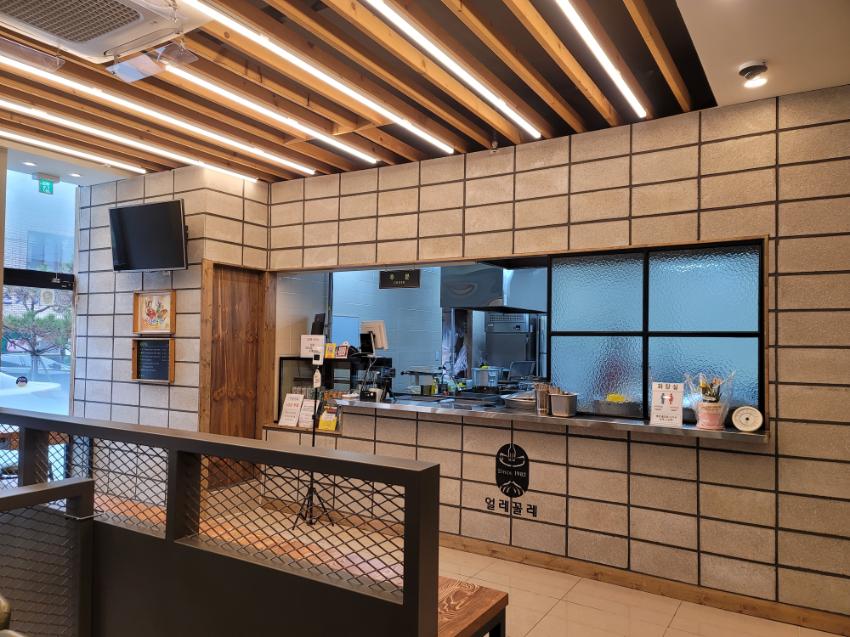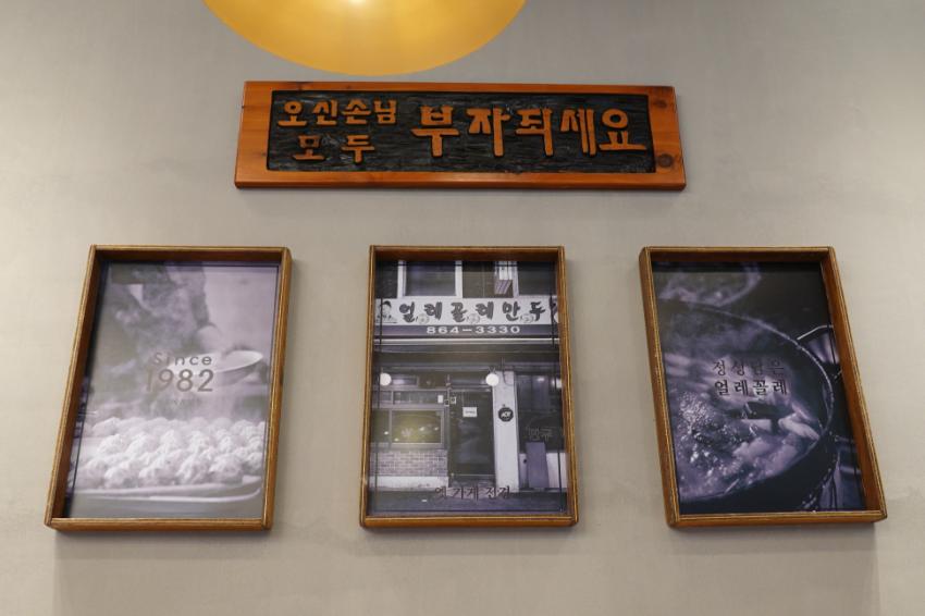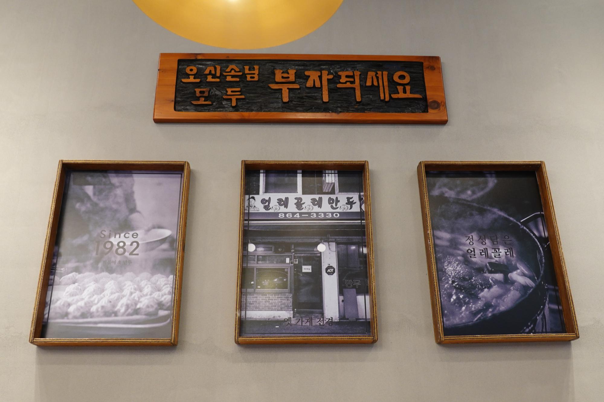 얼레꼴레만두의 가게내부 사진이다. 이전가게보다 더 쾌적해졌으며, 많은 손님들을 수용할 수 있는 가게로 바뀌었다. 또 이전가게에서 볼 수 있는 그림들이 있으며, 얼레꼴레만두의 예전사진도 함께 볼 수 있다.