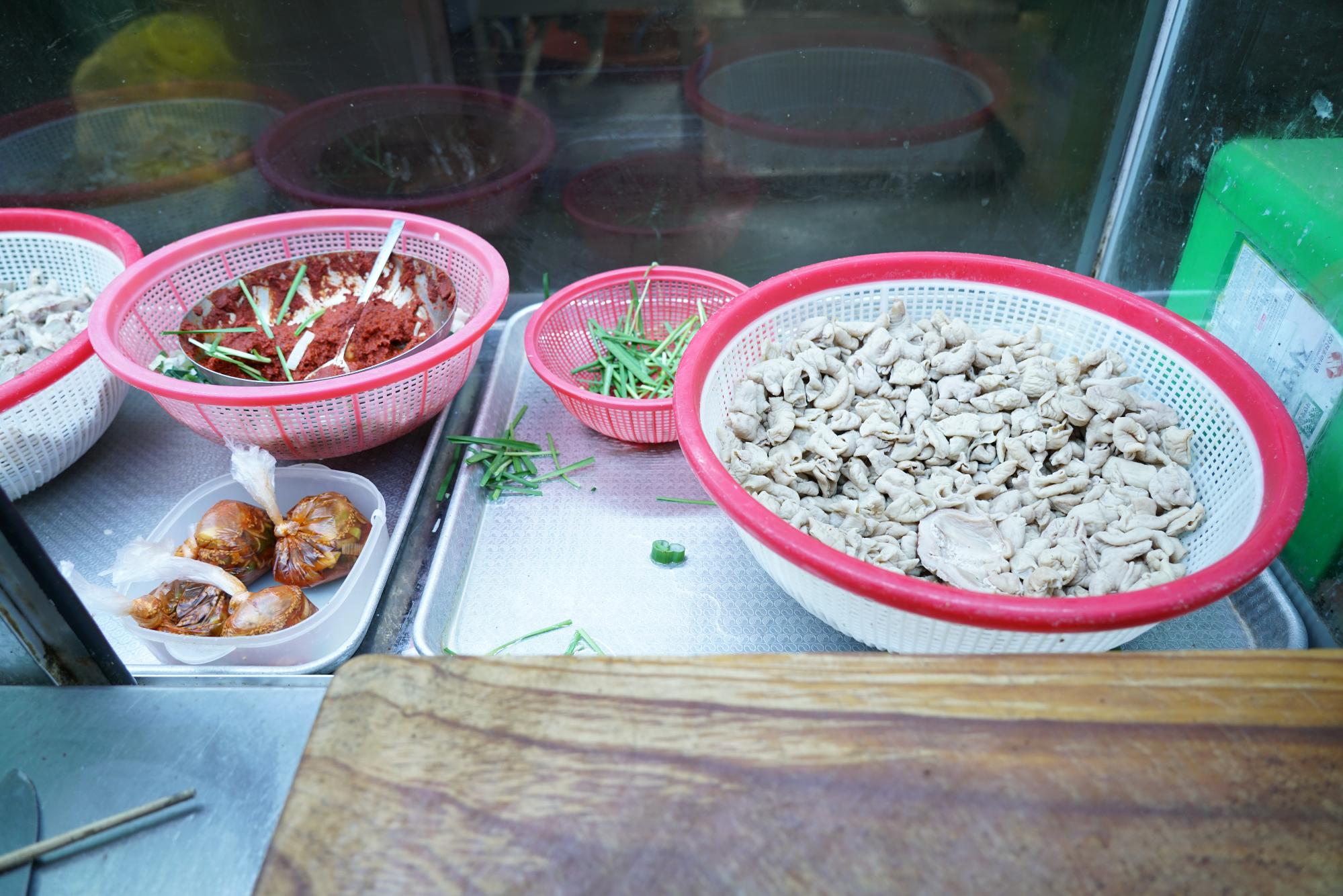 언니네 순대국 곱창사진이다. 곱창을 직접 손질하여 삶아낸 후 순대국에 넣어 손님들에게 제공한다. 곱창은 냄새가 나지않게 손질 후 삶는다.