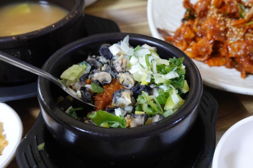 숭의쌈밥 우렁사진이다. 숭의쌈밥의 대표메뉴인 우렁쌈밥의 핵심 통통한 우렁이의 식감과 쌈장이 조화롭게 어우러진다. 손님들이 많이 찾는 음식중 하나이다.
