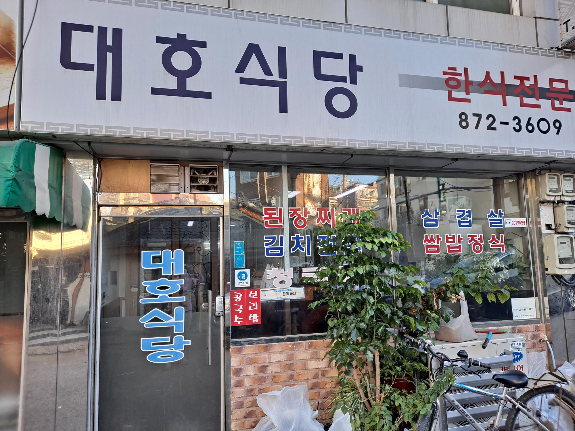 대호식당 가게전면사진이다. 처녀때부터 음식하는게 취미였으며, 학익동에 들어온지 34년이 되었다.