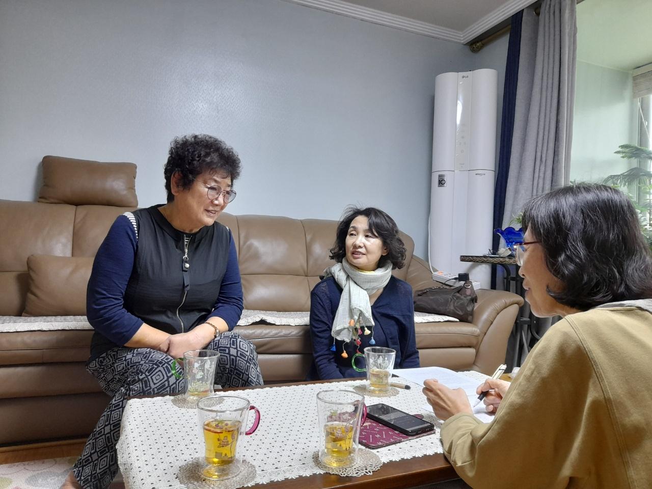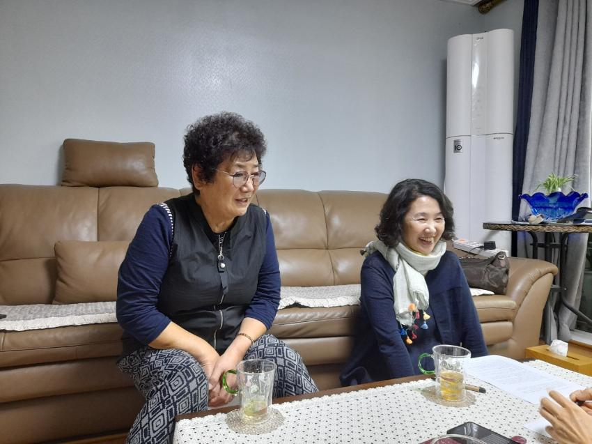 가정식 인터뷰 사진이다. 충북 괴산에 태어니 연수구, 동구를 거쳐 미추홀구에 산지 20년이다. 어렸을때부터 인천에 대한 추억이 많으며, 시대에 따라 조리방법이 달라지고 있다.