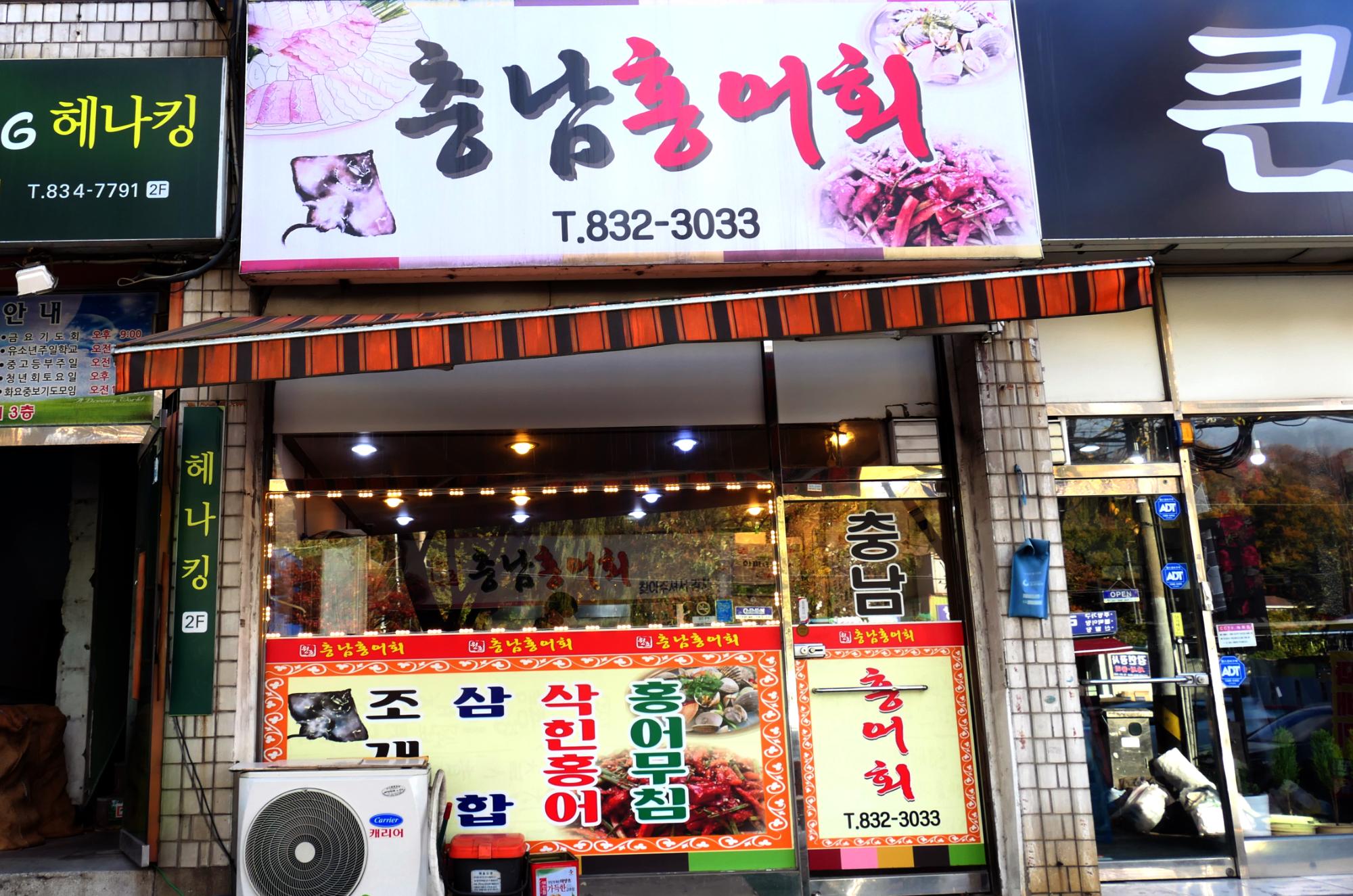 충남 홍어회 가게전경 사진이다. 현재 시어머니를 이어 51년째 장사를 하고 있으며, 추후 조개고개로 다시 돌아가 장사를 하는것이 목표이다.