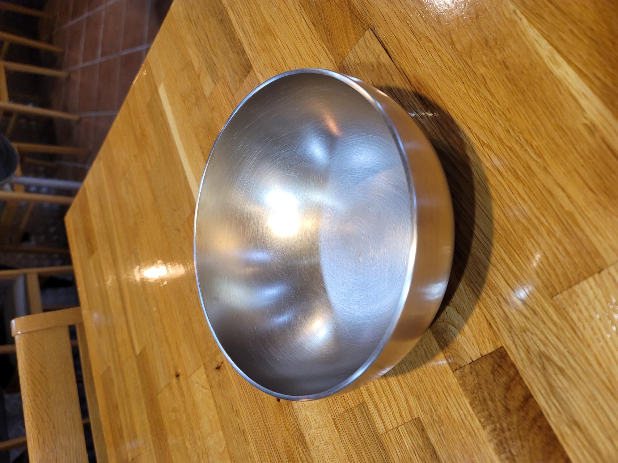 칼국수미학 놋그릇 사진이다. 무겁고 관리하기 힘들지만, 음식을 따뜻하게 보온해주는 장점과 맛을 생각하여 놋그릇을 사용하고 있다.