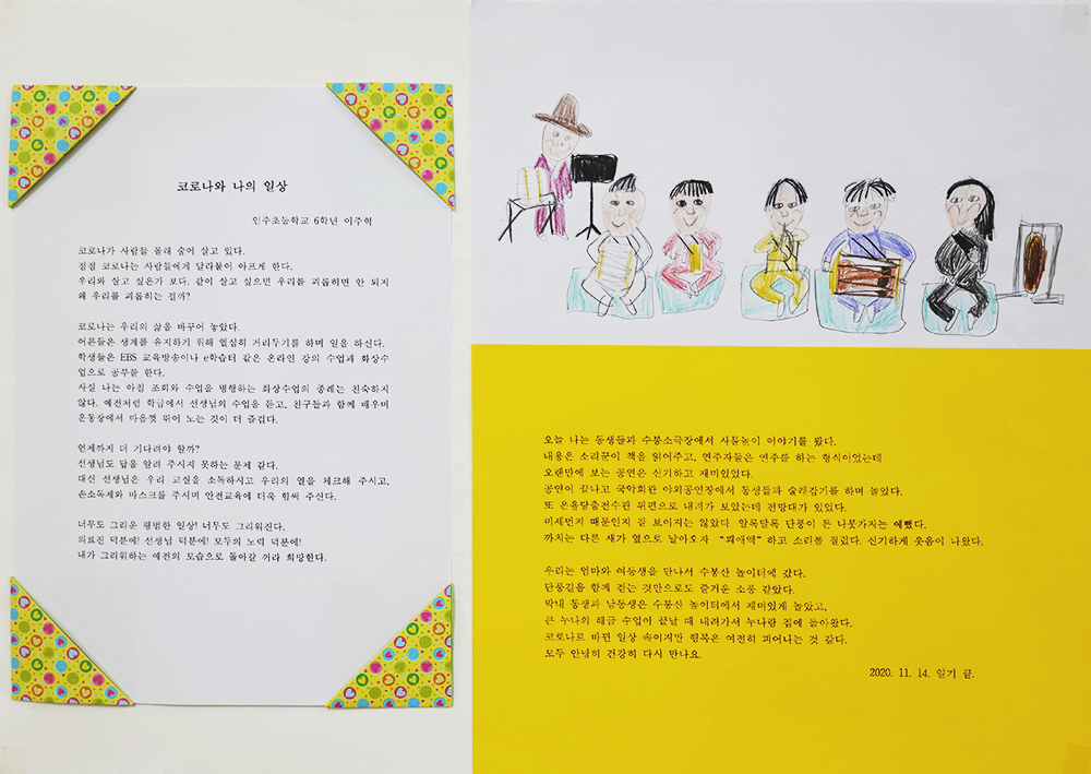 코로나로 평범한 일상이 그리워지고, 예전의 모습으로 돌아가길 희망한다. 또한, 사물놀이 공연을 관람하고 가족들과 놀이터에서 놀면서 행복은 여전히 있다는 것을 적었다.