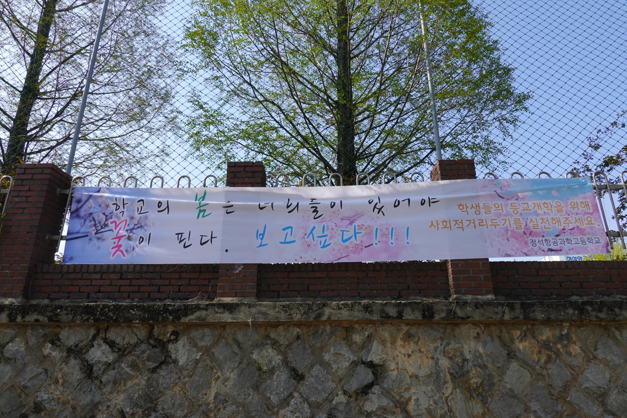 코로나19 감염증 확산으로 학교의 등교가 멈추면서 학교 교문 및 벽면에는 학생들의 등교를 기다리는 현수막이 붙었다. 정석항공과학교(미추홀구 용현동)에는 '학교의 봄은 너희들이 있어야 꽃이 핀다. 보고싶다!'라는 문구의 현수막이 학교 벽에 붙었다. 이 당시 학생들이 등교하여 공부할 수 있도록 사회적 거리두기를 준수하여 코로나19 확산을 막아보자는 사회적 메세지들을 전달하기도 했다.