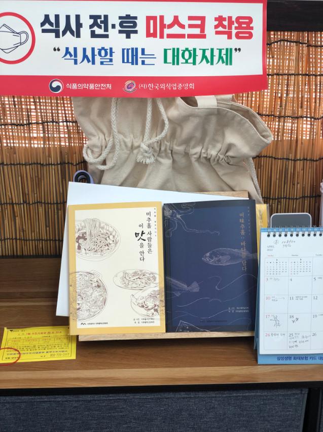 2021년도에 미추홀학산문화원에서 발행된 [미추홀, 살아지다] 음식시리즈 두 권의 구술자로 참여하셨던 식당의 사장님께 도서를 전달하였고, 그 후 방문한 과정에서 도서가 식당에 비치된 모습을 발견하였다.
