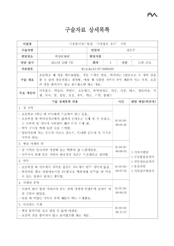 | 출처분류 | 미추홀학산문화원 사업 미추홀 기록 2021 시민기록단_음식기록 인터뷰 |