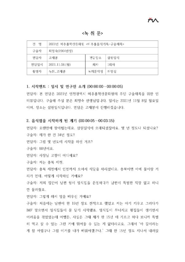 | 출처분류 | 미추홀학산문화원 사업 미추홀 기록 2021 미담식회_음식기록 원고 |