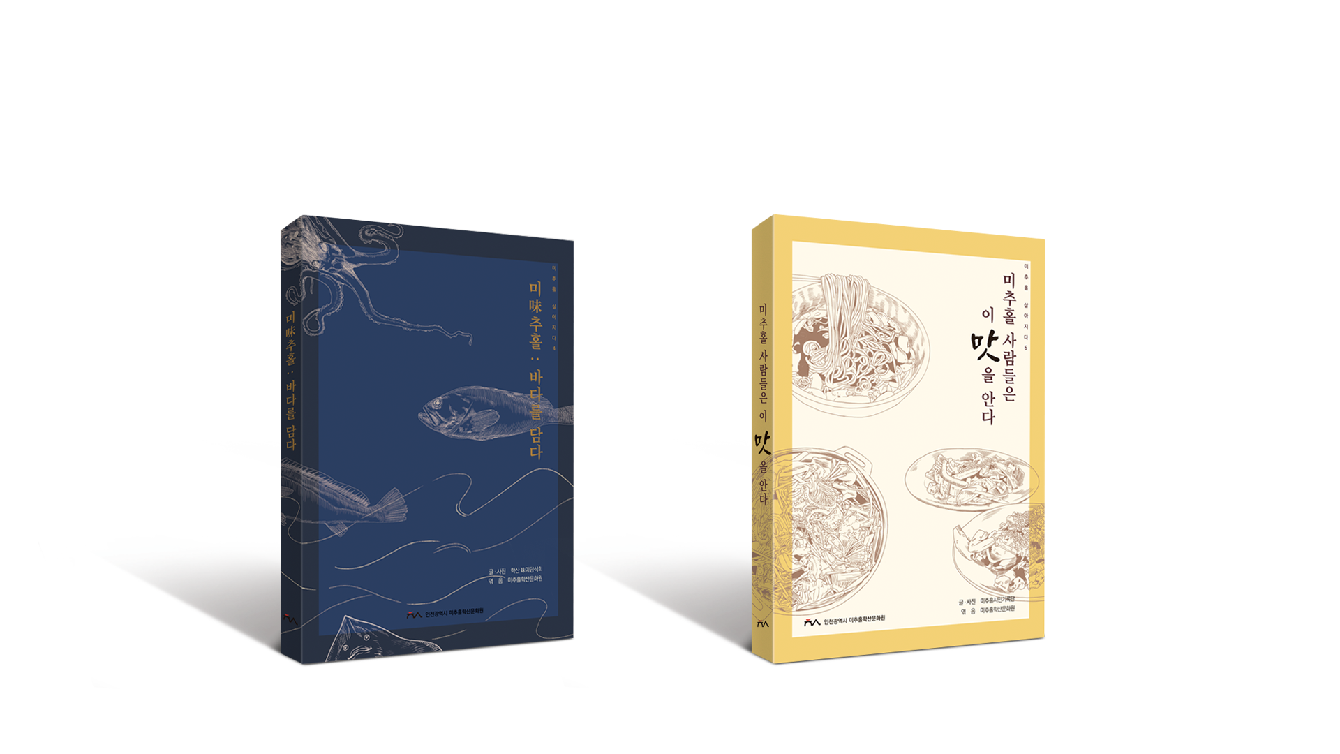 2021년에 발간된 「미추홀, 살아지다4,5」 미추홀의 음식시리즈 도서 2종 발간 홍보과정에서 제작한 목업이미지이다.