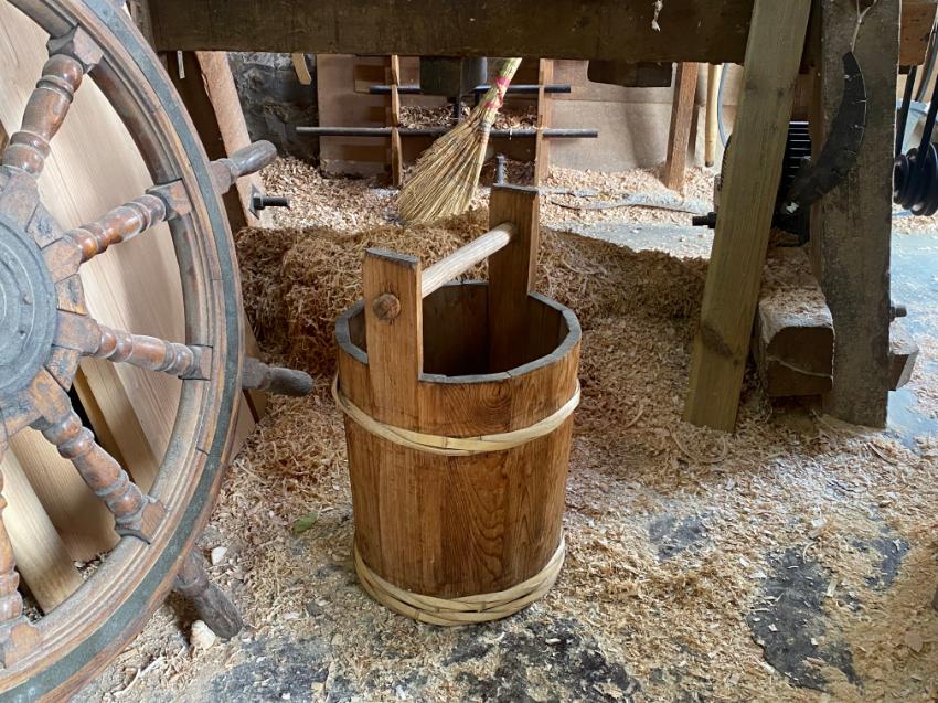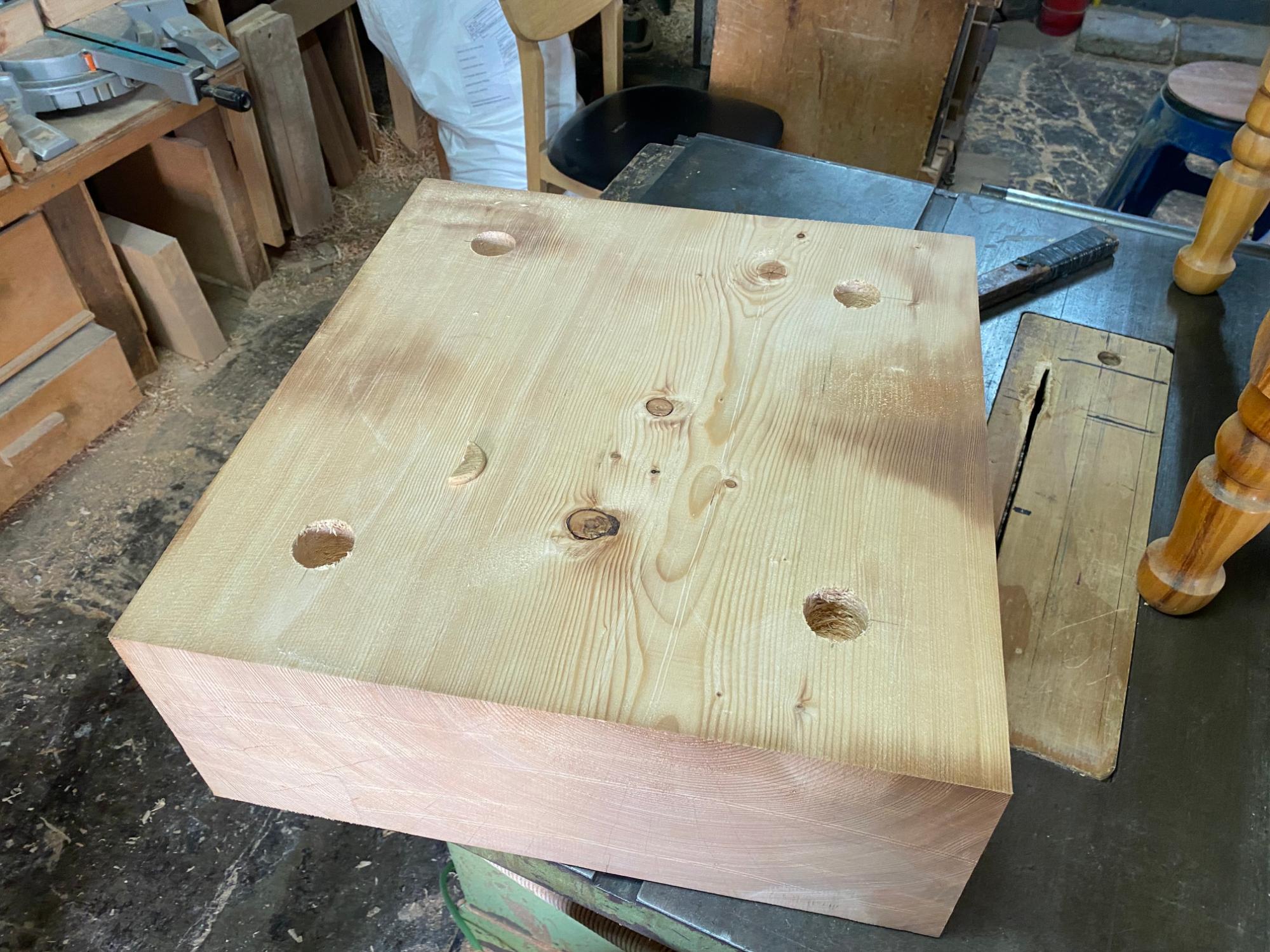 2022년 숭의목공예마을 기록을 위해 신정목공예에 방문하였을 때 촬영한 작업물(바둑판의 틀과 다리, 똥통) 사진이다.