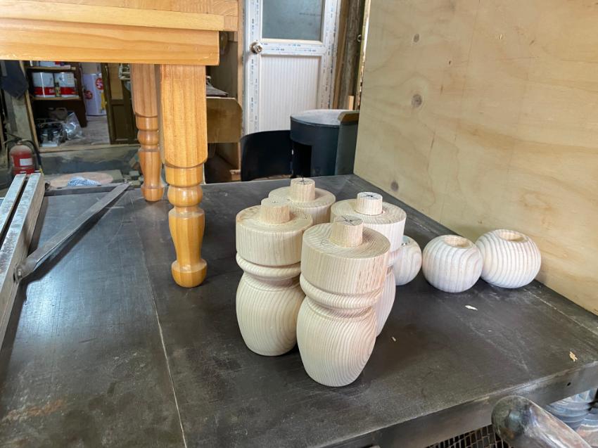 2022년 숭의목공예마을 기록을 위해 신정공예사에 방문하였을 때 촬영한 작업물(바둑판의 틀과 다리) 사진이다.