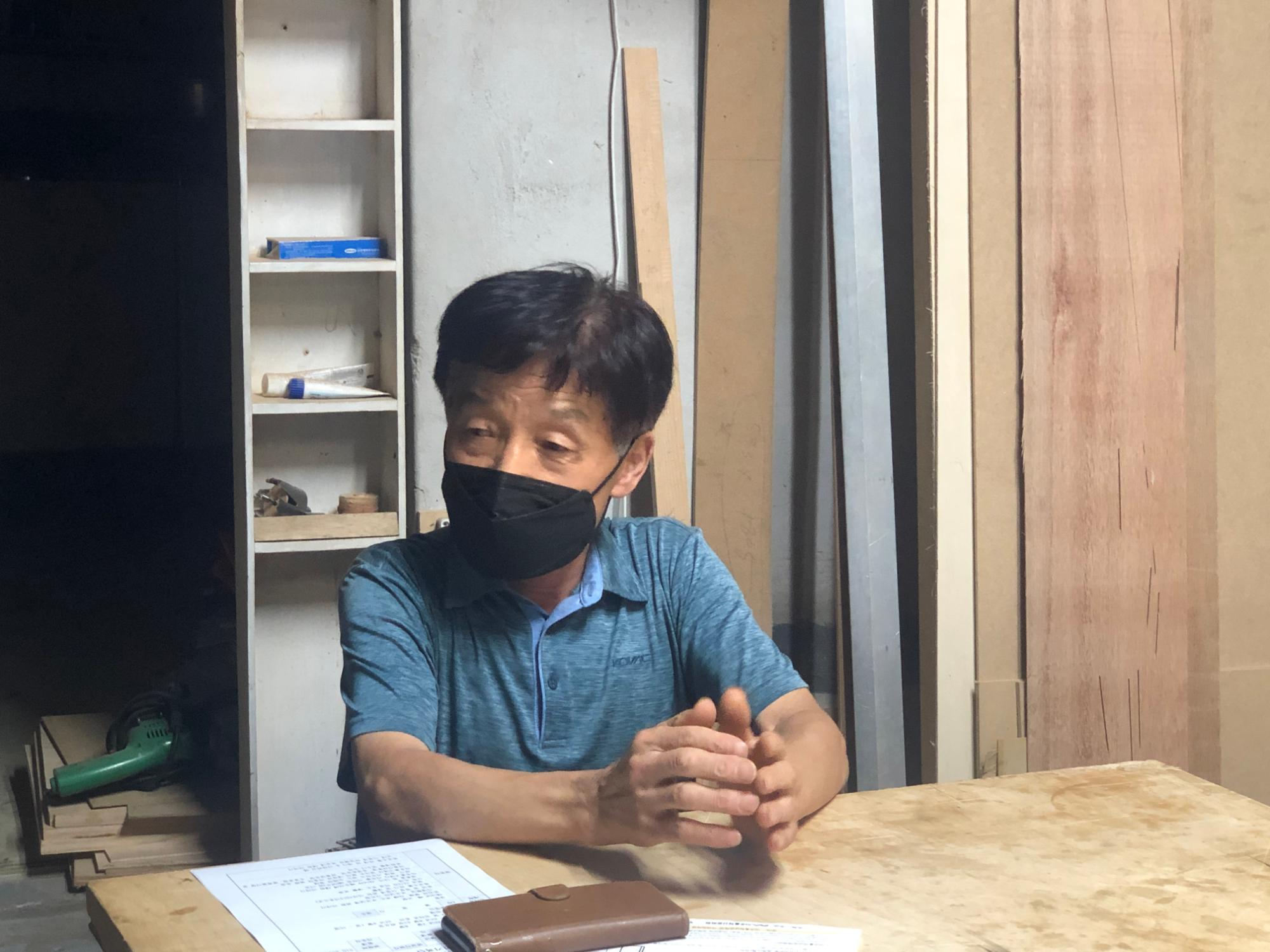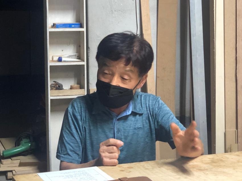 2022년 숭의목공예마을 기록을 위해 미추홀시민기록단 정지선이 고려목공소 차기대 사장을 사전면담하는 모습이다. 본 인터뷰를 하기 전 기본 정보를 파악하였다.
