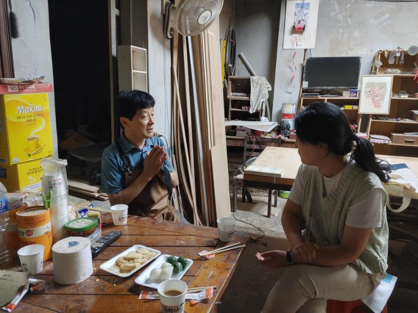 | 변경전 내용 | 2022년 숭의목공예마을 기록을 위해 미추홀시민기록단 정지선님이 고려목공소 사장님을 인터뷰하는 모습이다. 목공 직업을 주제로 사장님의 삶을 함께 기록하였다. • 촬영장소 : 고려목공소(미추홀구 숭의동) |