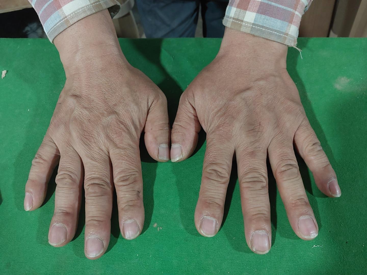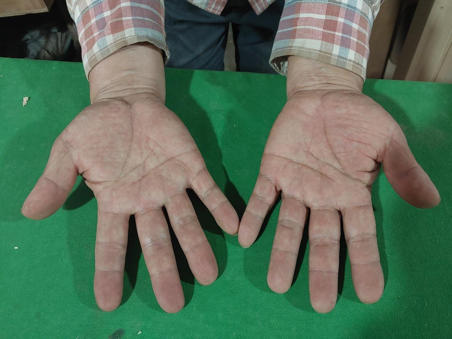 2022년 숭의목공예마을 기록을 위해 대한공예 이철희 사장의 손을 촬영한 사진이다.