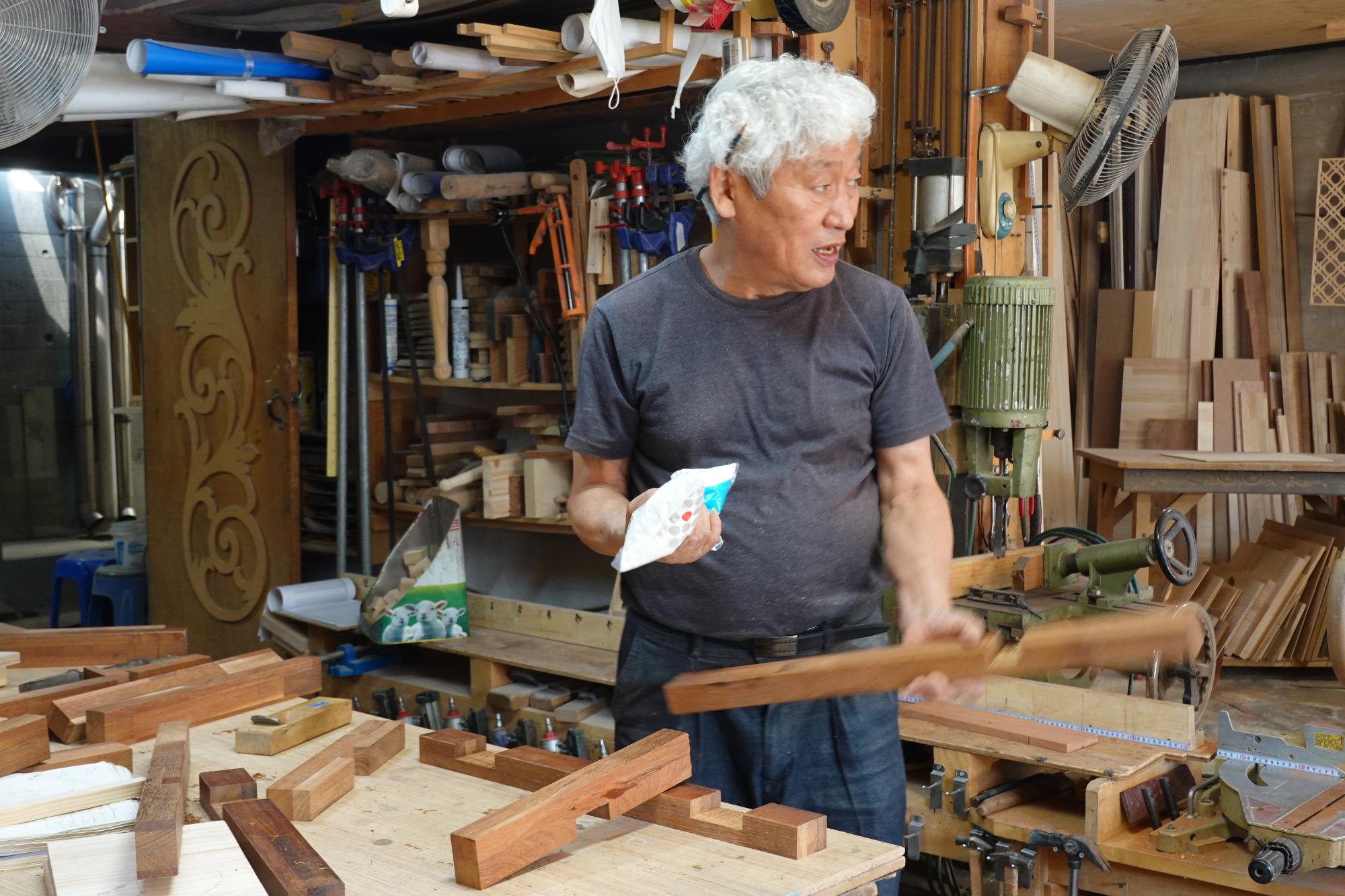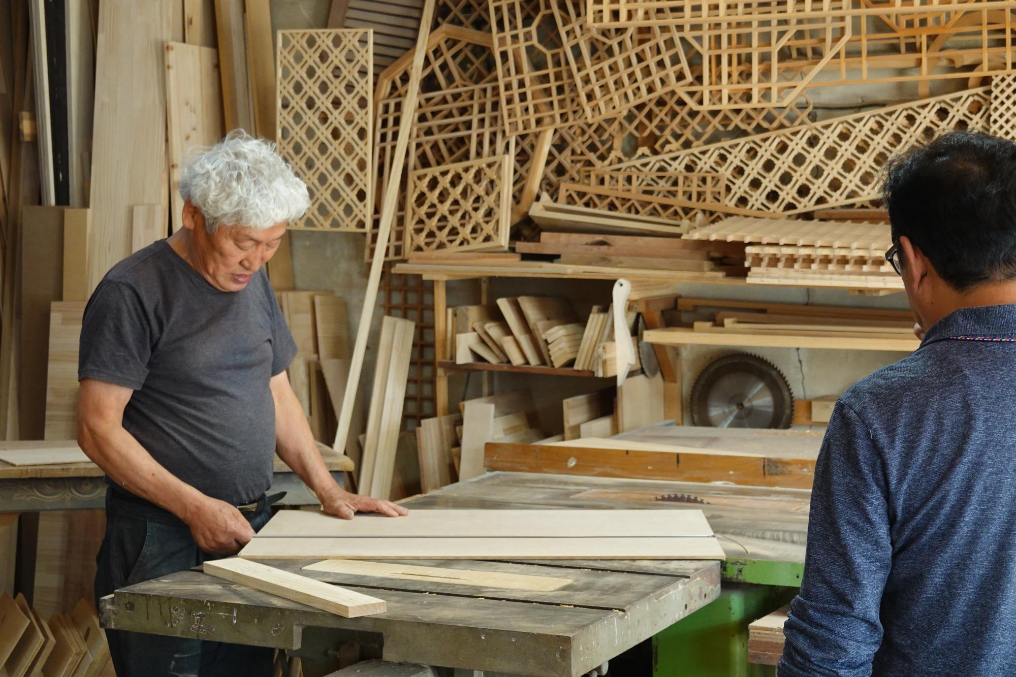 2022년 숭의목공예마을 기록을 위해 고전공예사 강오원 사장의 작업하는 모습을 촬영한 사진이다.
