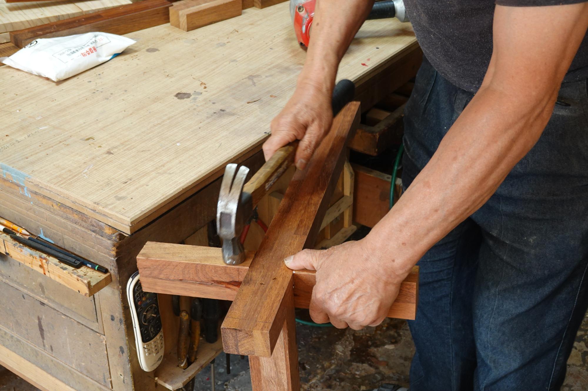 2022년 숭의목공예마을 기록을 위해 고전공예사 사장님을 인터뷰 하러 갔을 때 작업하시는 모습을 촬영한 사진이다.
