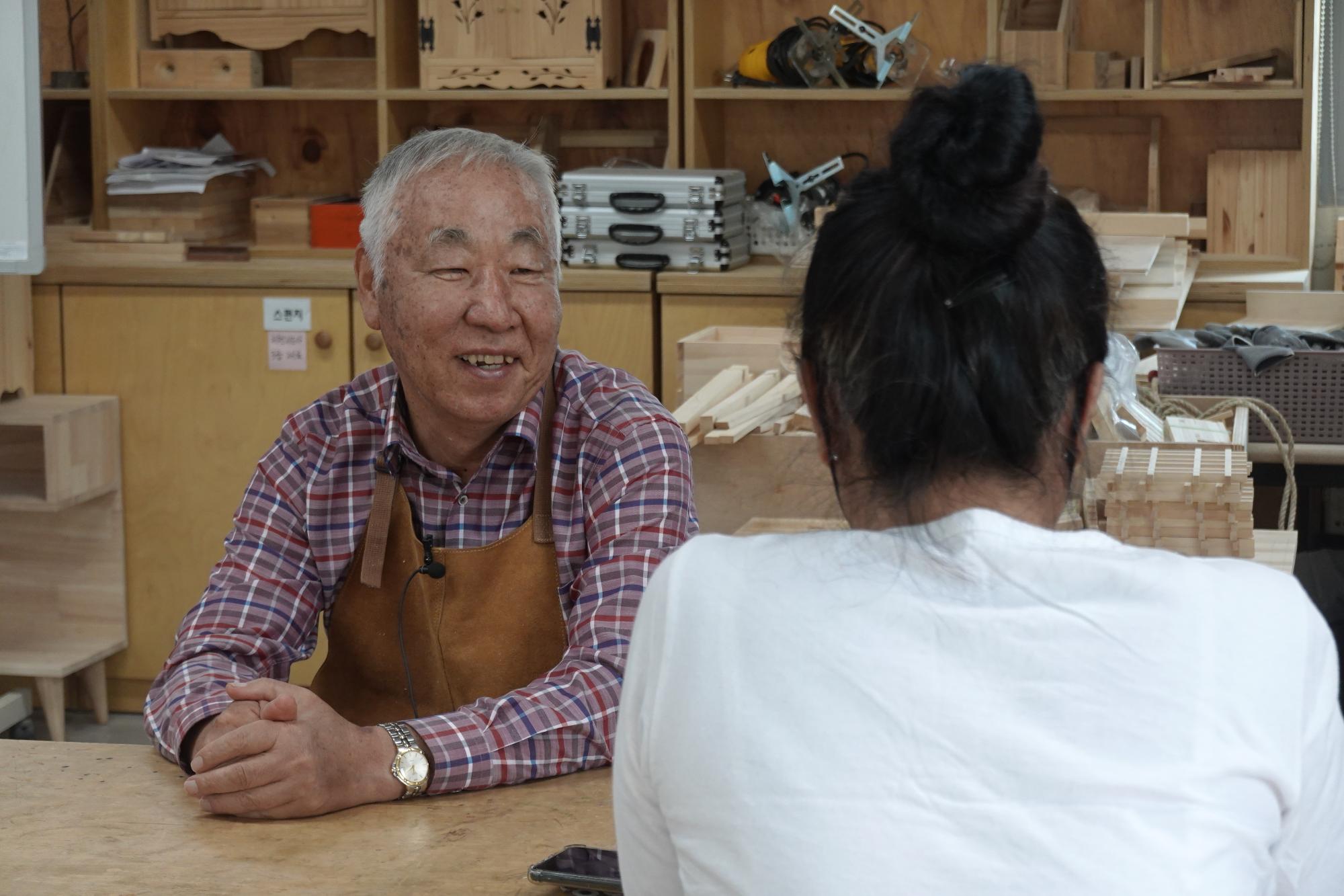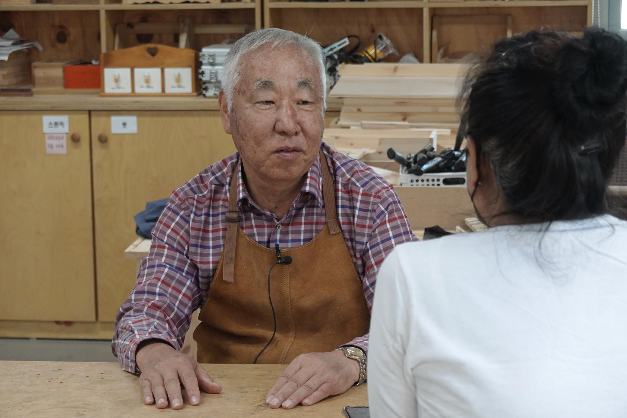 | 변경전 내용 | 2022년 숭의목공예마을 기록을 위해 미추홀시민기록단 이혜숙님이 서울목공예 사장님을 인터뷰하는 모습이다. 목공 직업을 주제로 사장님의 삶을 함께 기록하였다. • 촬영장소 : 숭의목공예센터(미추홀구 숭의동) |