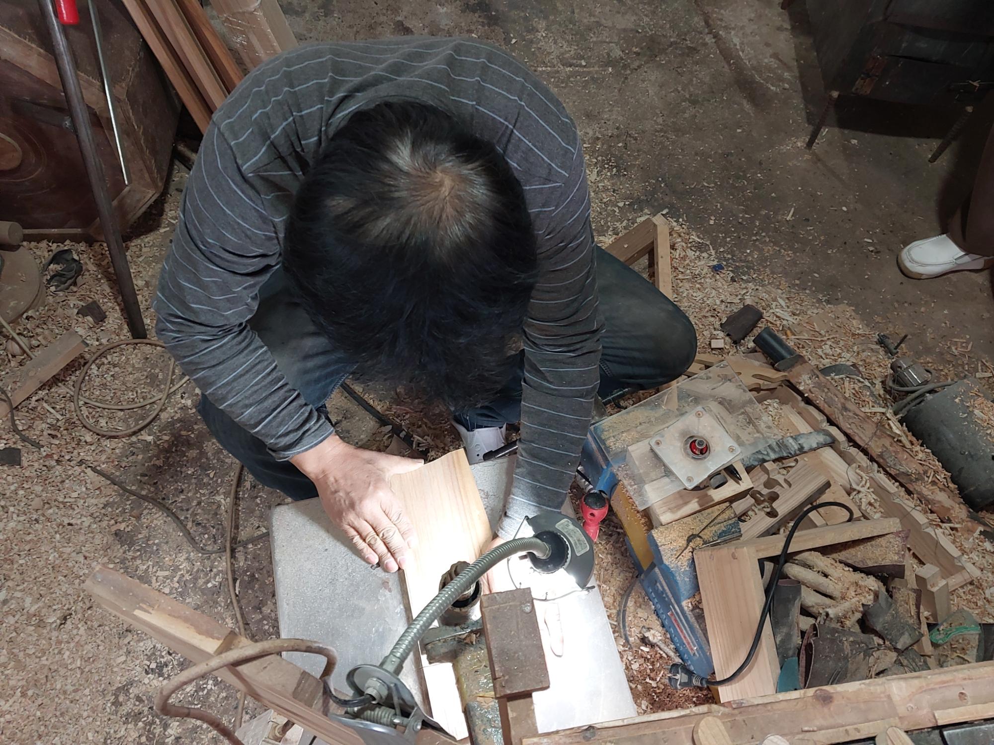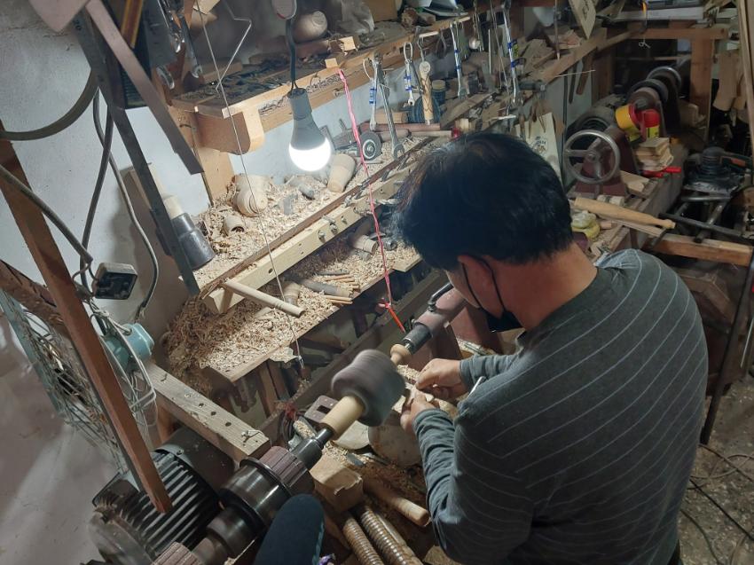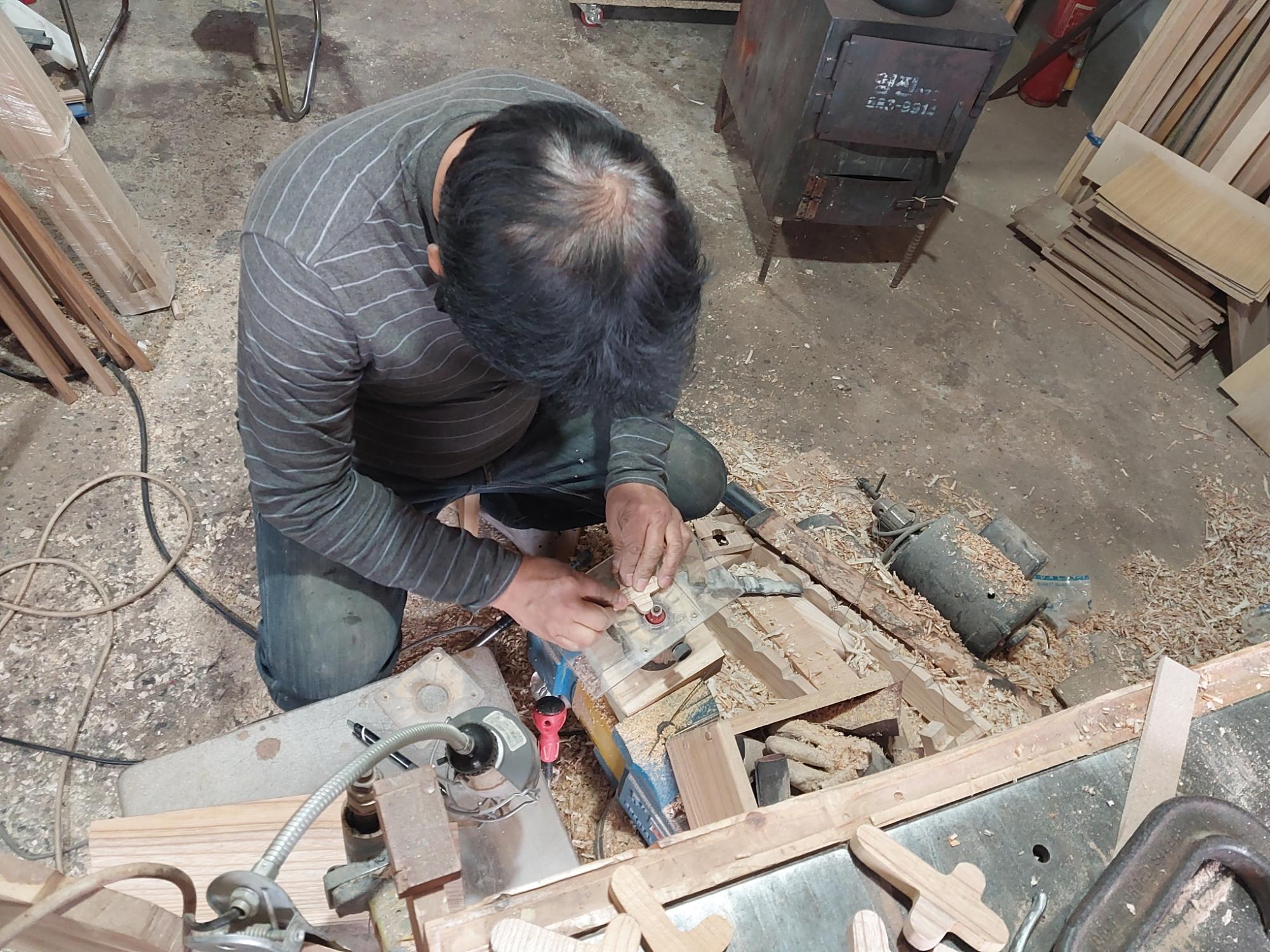 2022년 숭의목공예마을 기록을 위해 대한공예 이철희 사장이 작업하는 모습을 촬영한 사진이다.
