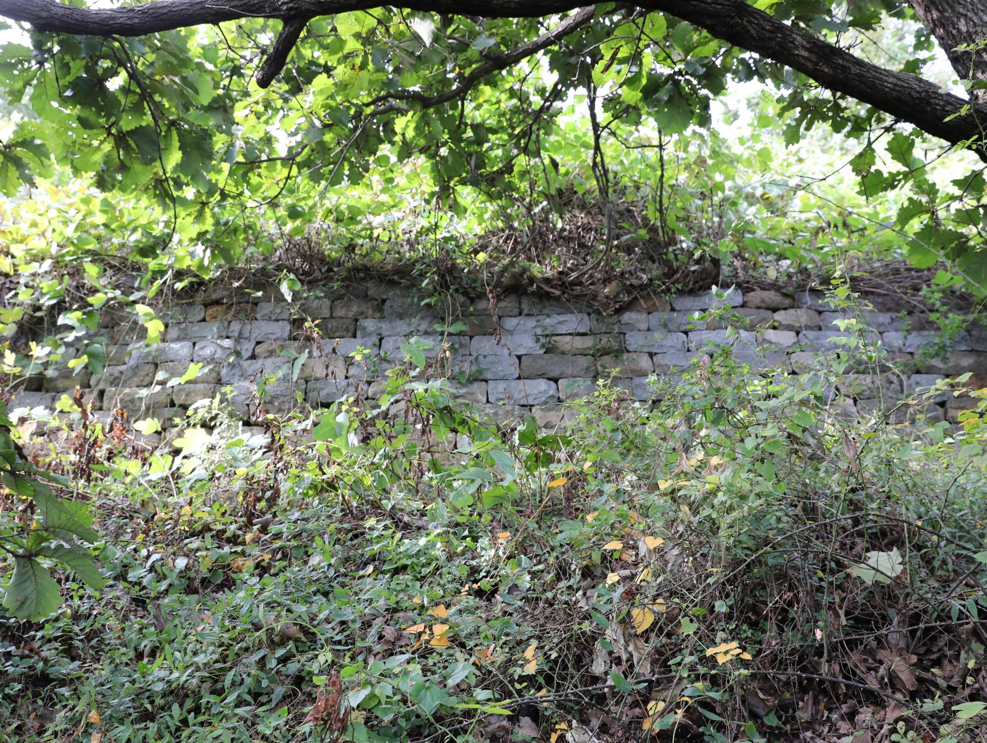 문학산 남쪽 나무다리 방향에 위치한 문학산성의 모습을 촬영한 사진이다.