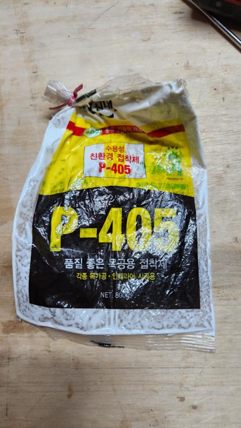 2022년 숭의목공예마을 기록을 위해 고려목공소에 방문하였을 때 촬영한 작업물품(목공용 접착제) 사진이다.