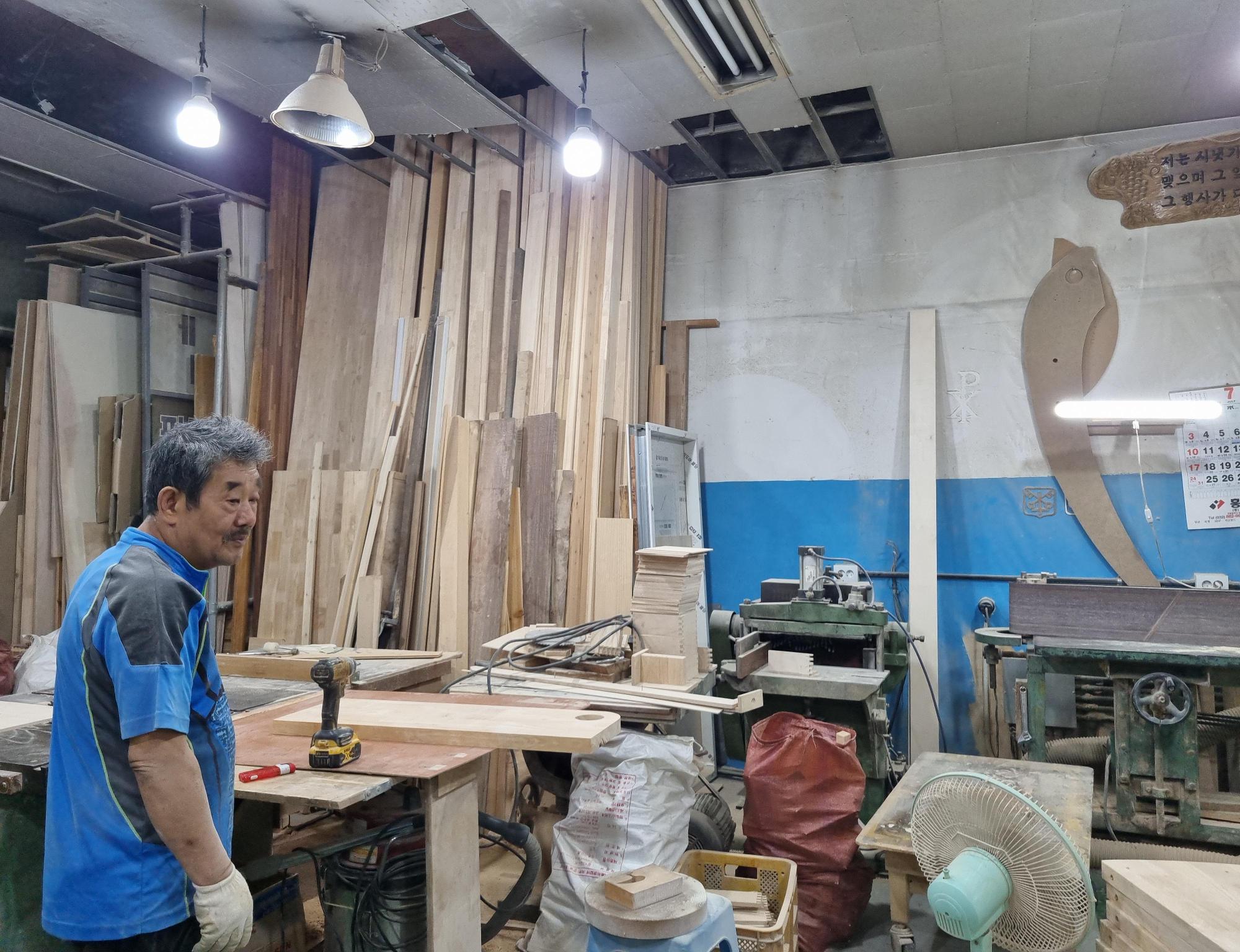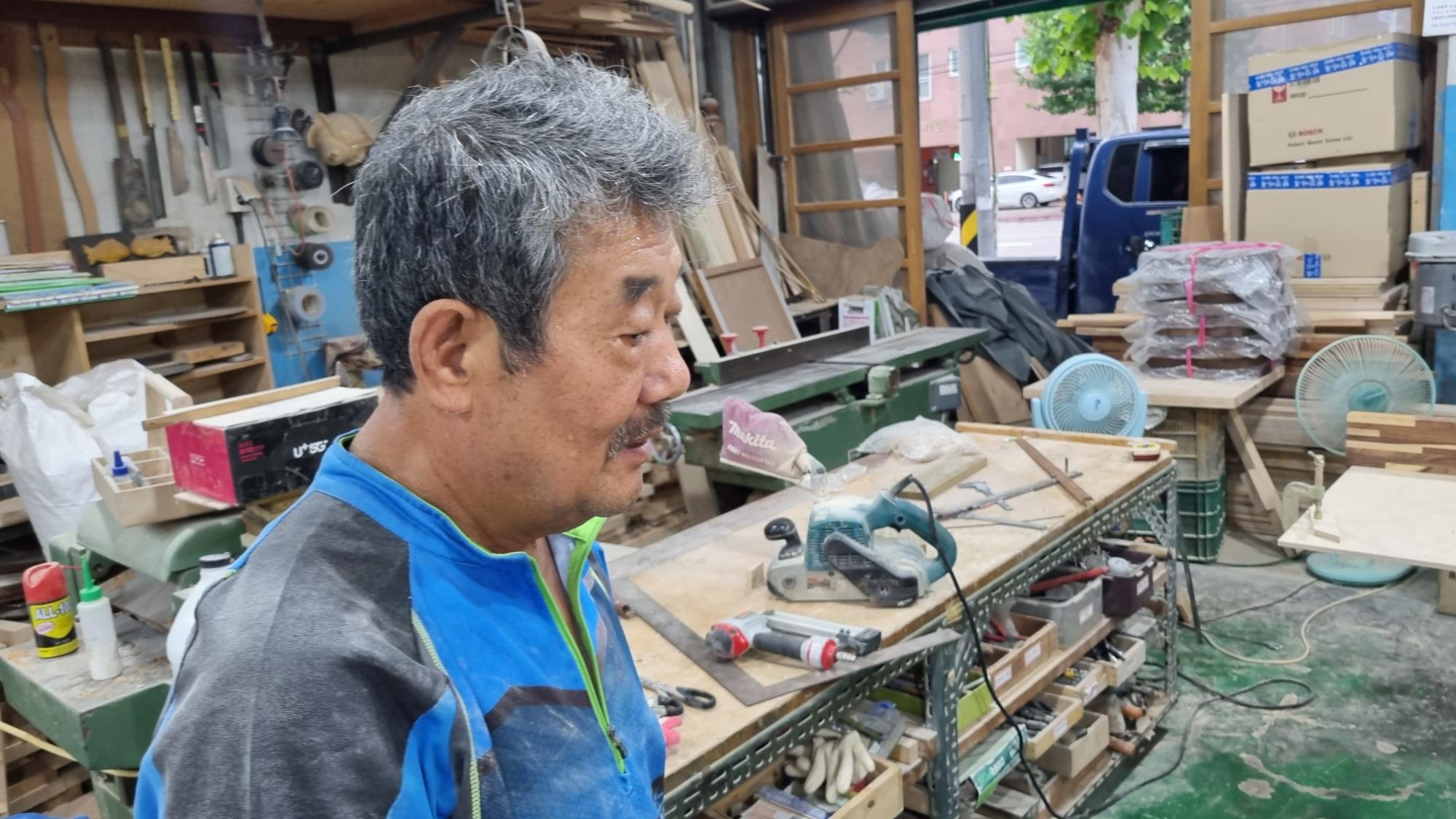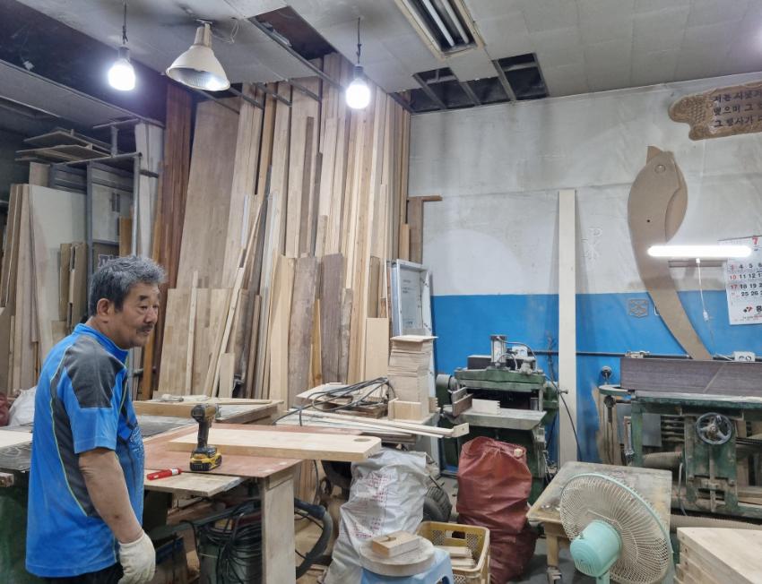 2022년 숭의목공예마을 기록을 위해 명진공예사 윤덕환 사장을 촬영한 사진이다.