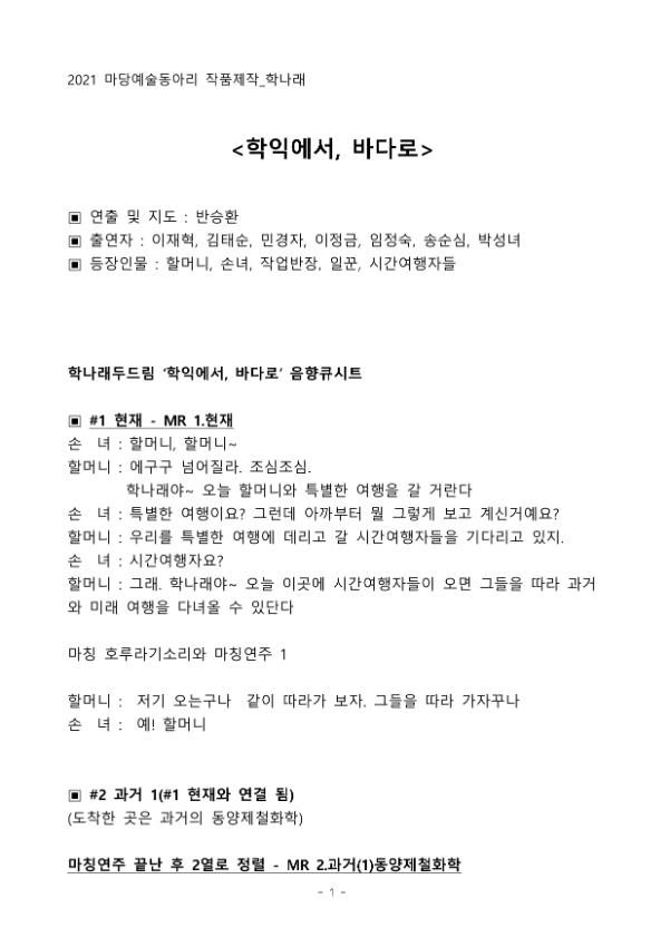 | 검색어 | 미추홀학산문화원,시민창작예술,마당예술동아리,학나래,학익1동,난타극 |