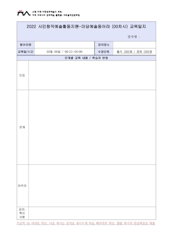 마당예술동아리,강사,미추홀학산문화원,시민창작예술,동아리,교육일지,일지,연습,공연,창작