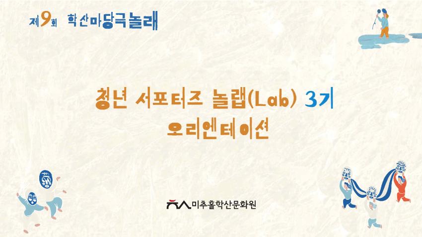 | 검색어 | 미추홀학산문화원,시민창작예술,마당예술동아리,서포터즈,청년서포터즈,놀랩,모집,오티,공고 |