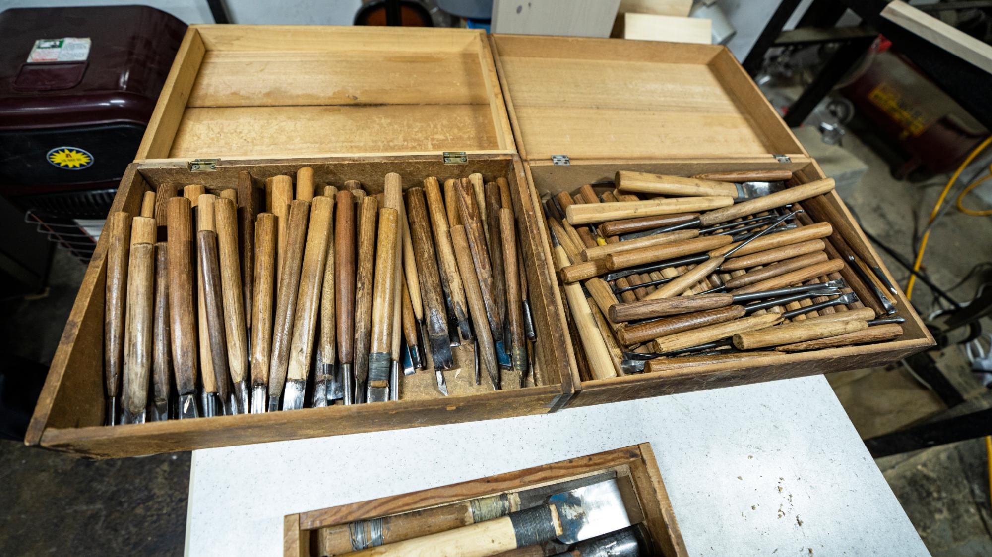 2022년 숭의목공예마을 기록을 위해 인일조각 박호만 사장의 작업도구(조각칼) 사진이다.