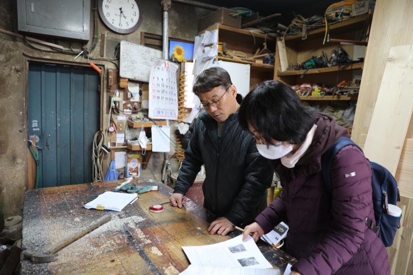 2022년 숭의목공예마을 기록을 위해 보령목공 이복섭 사장님 인터뷰를 진행하고 해당 내용에 대한 검수를 받기 위해 찾아간 모습이다.