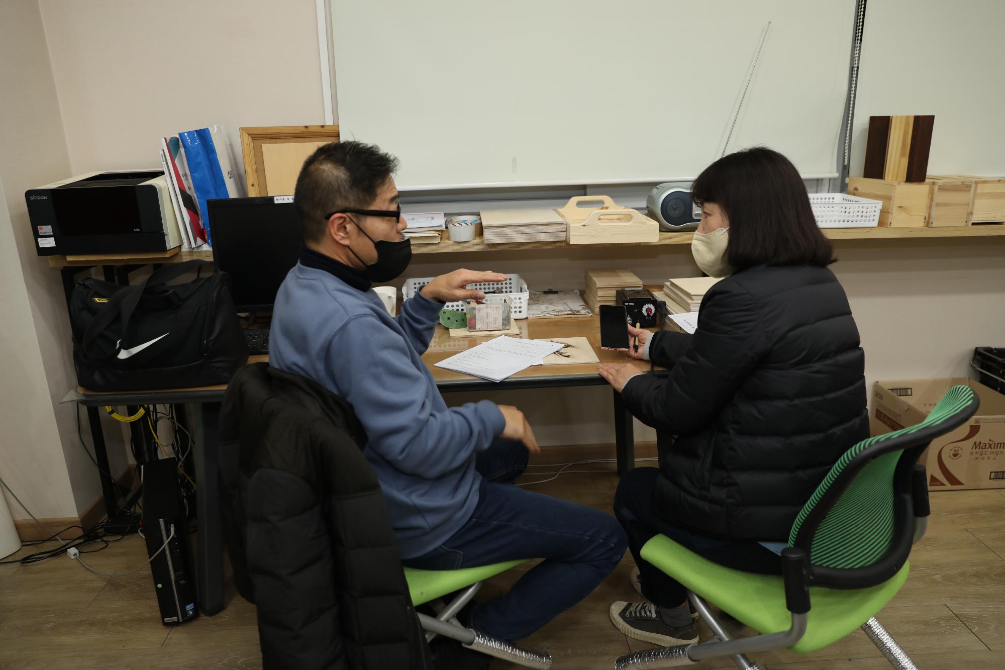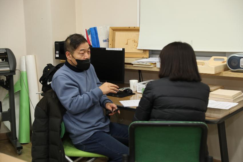 | 변경전 내용 | 2022년 숭의목공예마을 기록을 위해 미추홀시민기록단 허은영님이 준아트 이현준 사장님을 인터뷰하는 모습이다. 목공 직업을 주제로 사장님의 삶을 함께 기록하였다. • 촬영장소 : 창작공방(미추홀구 숭의동) |