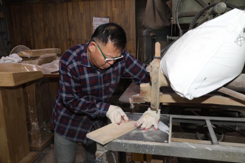 2022년 숭의목공예마을 기록을 위해 한일원목목공을 방문했을 때 김종필 사장님이 작업하시는 모습을 촬영한 사진이다.