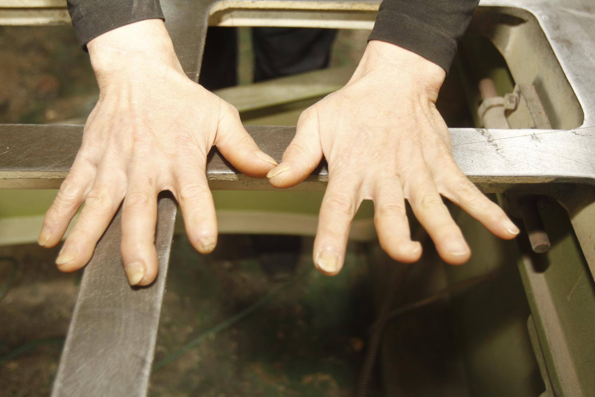 2022년 숭의목공예마을 기록을 위해 모던목공방 조한일 사장의 손을 촬영한 사진이다.