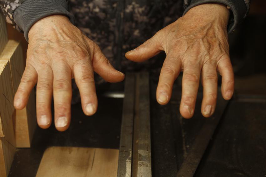 2022년 숭의목공예마을 기록을 위해 신정목공예 안희식 사장님의 손을 촬영한 사진이다.