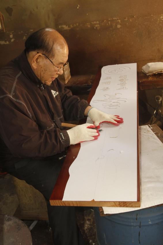 2022년 숭의목공예마을 기록을 위해 인일조각 진교욱 사장이 작업(조각)하는 모습을 촬영한 사진이다.