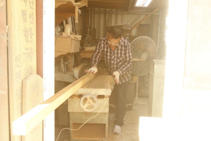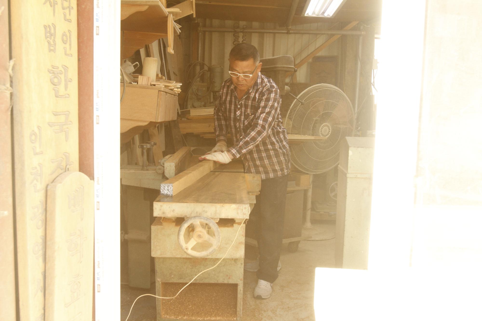 2022년 숭의목공예마을 기록을 위해 한일원목목공 김종필 사장이 작업하는 모습을 촬영한 사진이다.