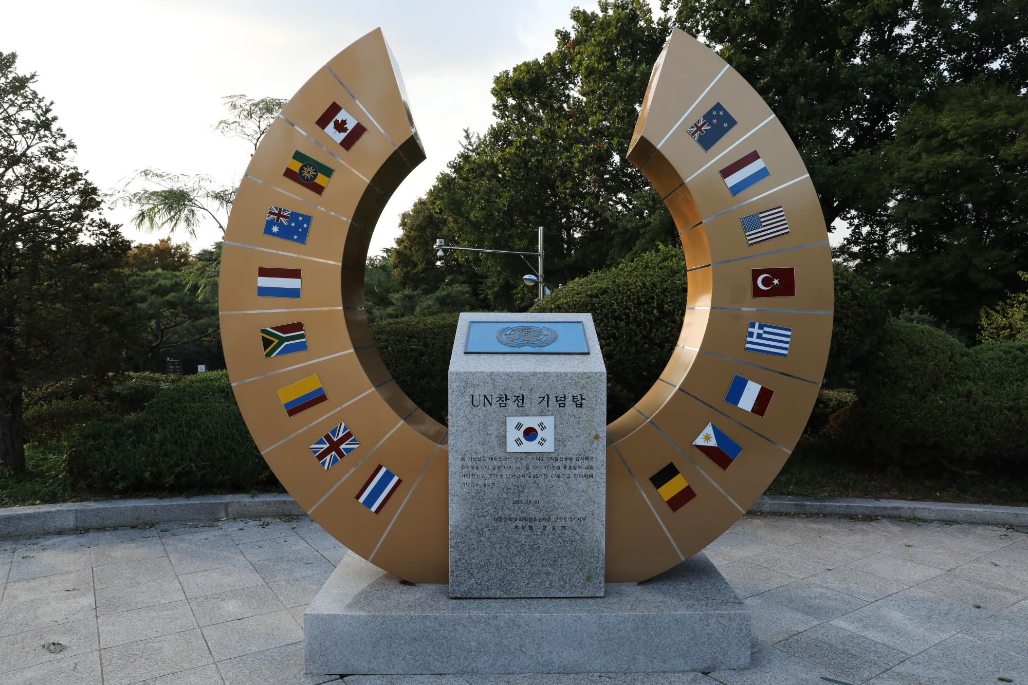 인천광역시 미추홀구 숭의동에 위치한 수봉공원 내 UN참전 기념탑을 촬영한 사진이다.