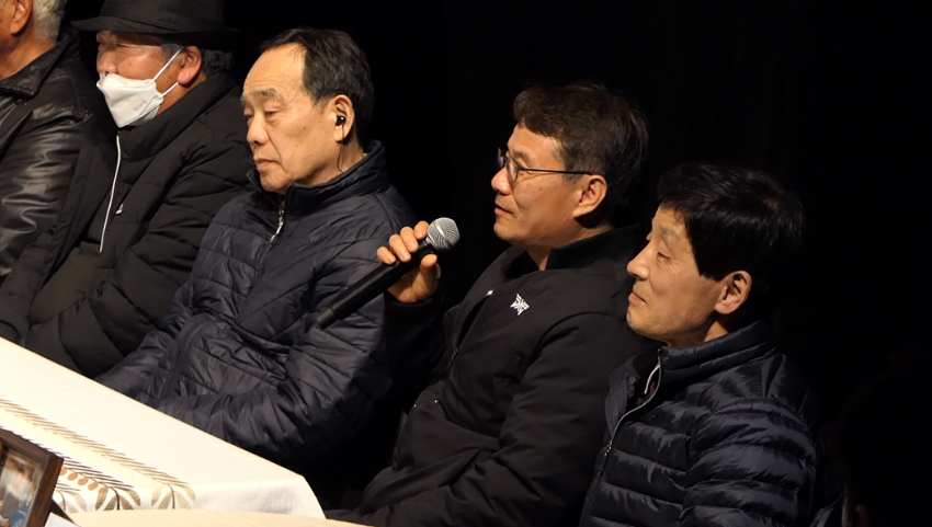 | 변경후 내용 | 숭의목공예마을 나무장인 이야기 '나뭇결 따라 살아온 삶' 도서 출판기념회 사진이다. 보령목공 이복섭 장인이 소감을 말하고 있는 모습니다. • 촬영장소: 학산소극장 |